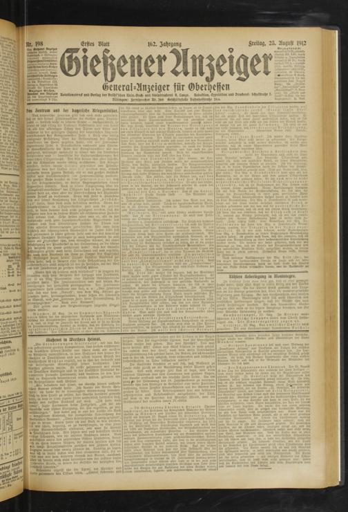 Ur. 198 Erstes Blatt 162. Jahrgang 8reitag, 25. August 19(2