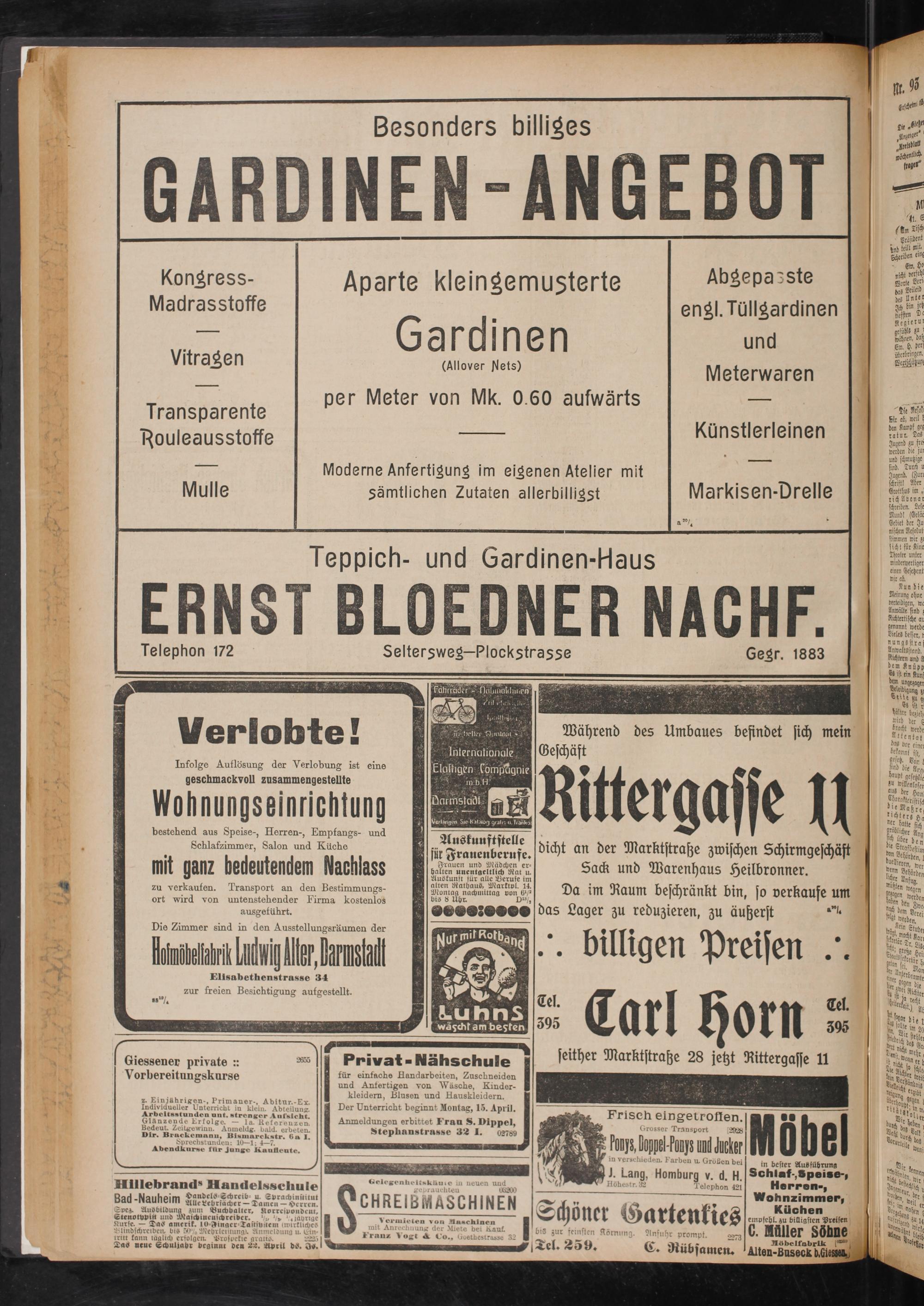 Während des Umbaues befindet sich mein Geschäft Rittergasse n dicht an der Marktstraße zwischen Schirmgeschäft Sack und Warenhaus Heilbronner.