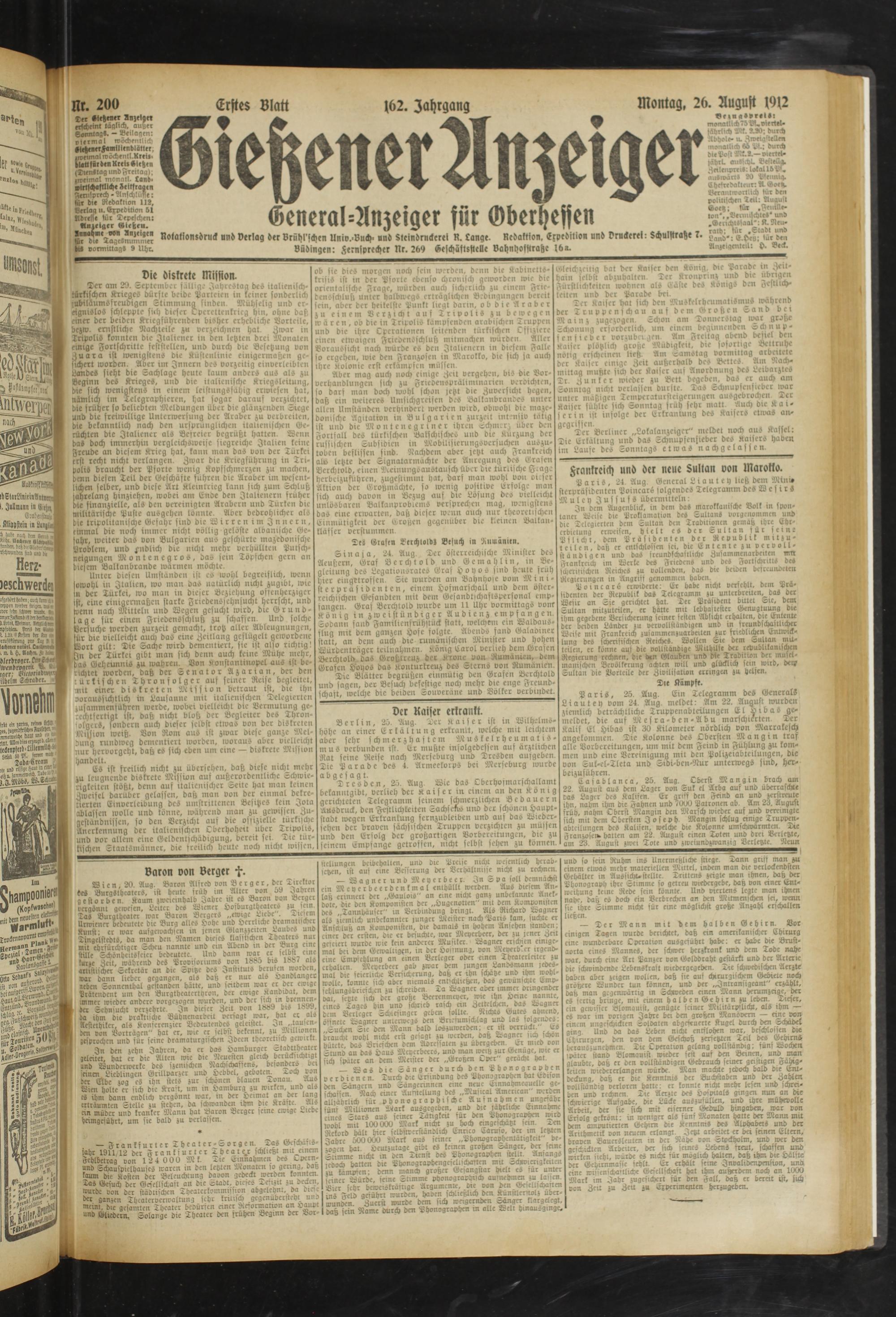 nr. 200 Erstes Blatt 162. Jahrgang Montag, 26. August 1912