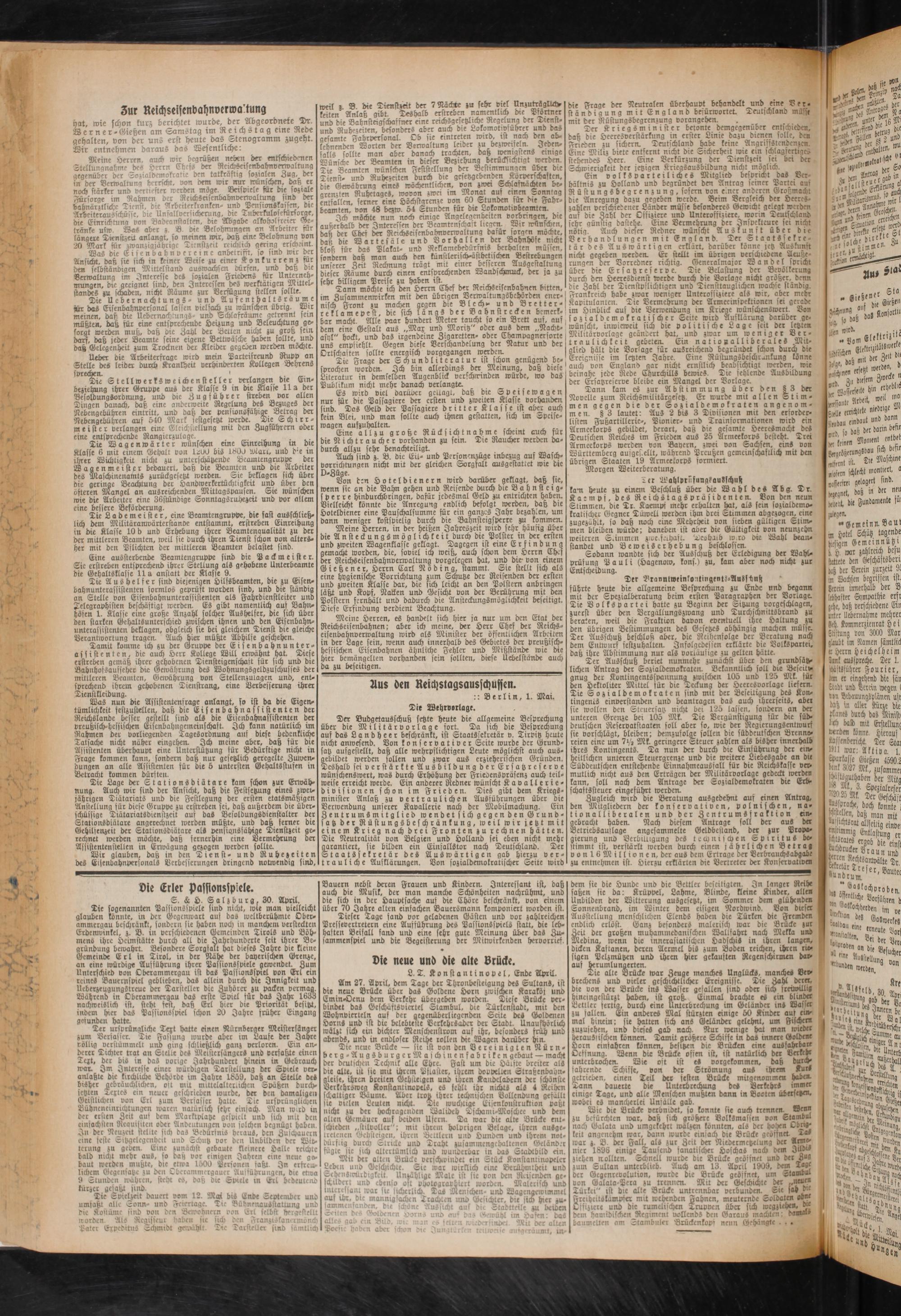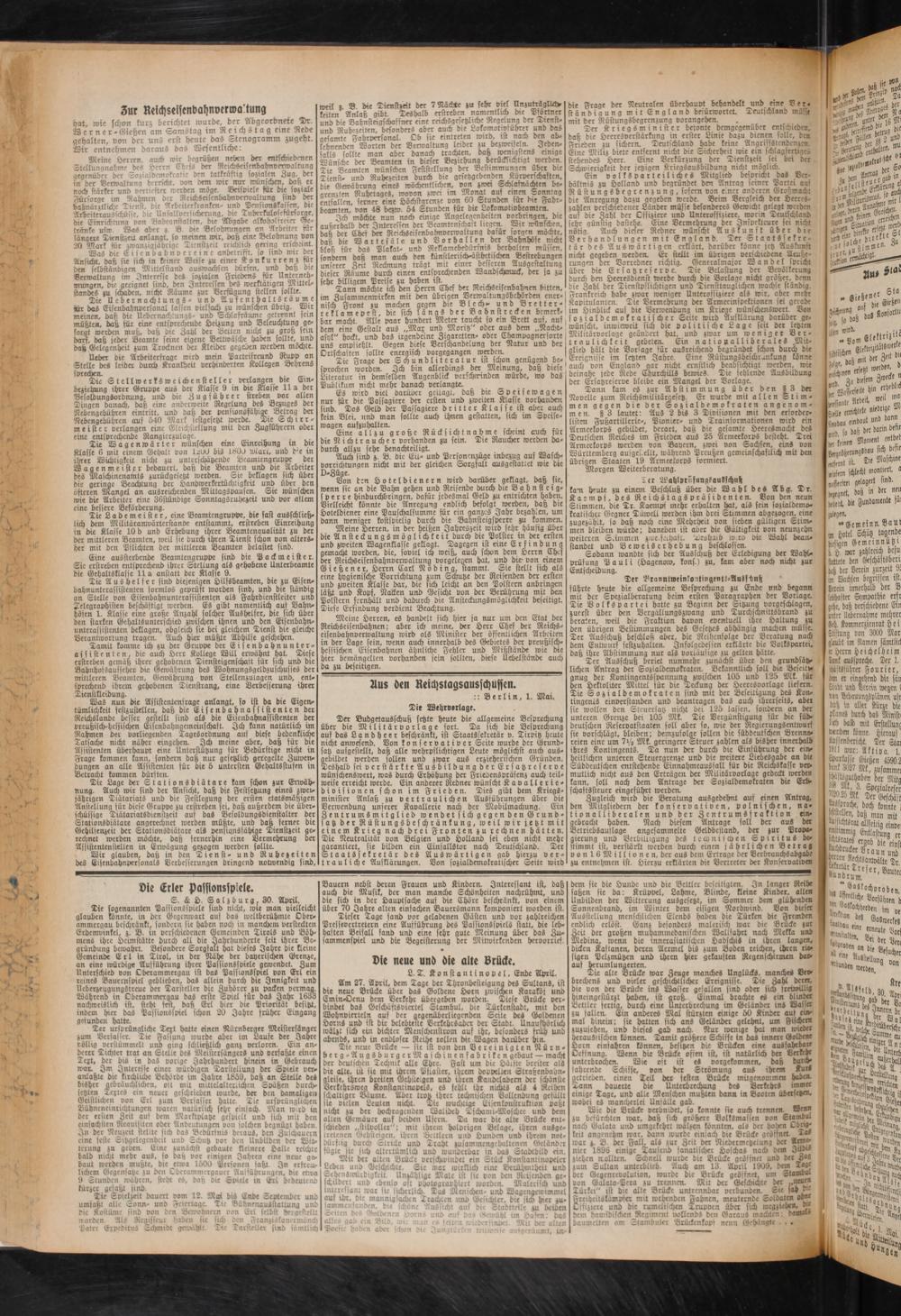 Reichseisenbahnen; aber ich meine, der Herr Chef der Reichs- eisenbahnverwaltung wird als Minister der öffentlichen Arbeiten in der Lage fein, wenn auch innerhalb des Gebietes der preußisch- hessischen Eisenbahnen ähnliche Fehler und Mißstände wie die hier bemängelten vorhanden sein sollten, diese Uebdftönbc auch da zu beseitigen.