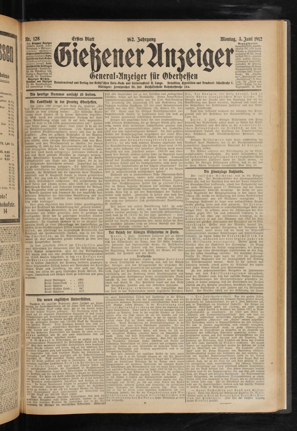 m. 128 Erster Blatt 162. Zahrgoiig Montag, 3. Juni 1912