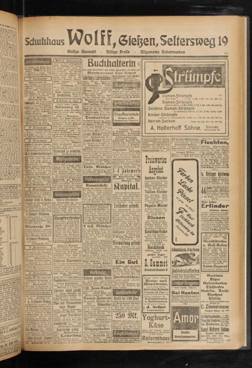 Für jüngeren Herrn wird in der Nähe der Goeihestrahe Schlafstelle mit Morgen kaffee in iSrael. Familie ges. Bett wird gestellt. Evtl, kann das Zimm, auch m. ein. Herrn gel. werd. Schr. Ang. u. 04330 an den Giehener Anz. erb.