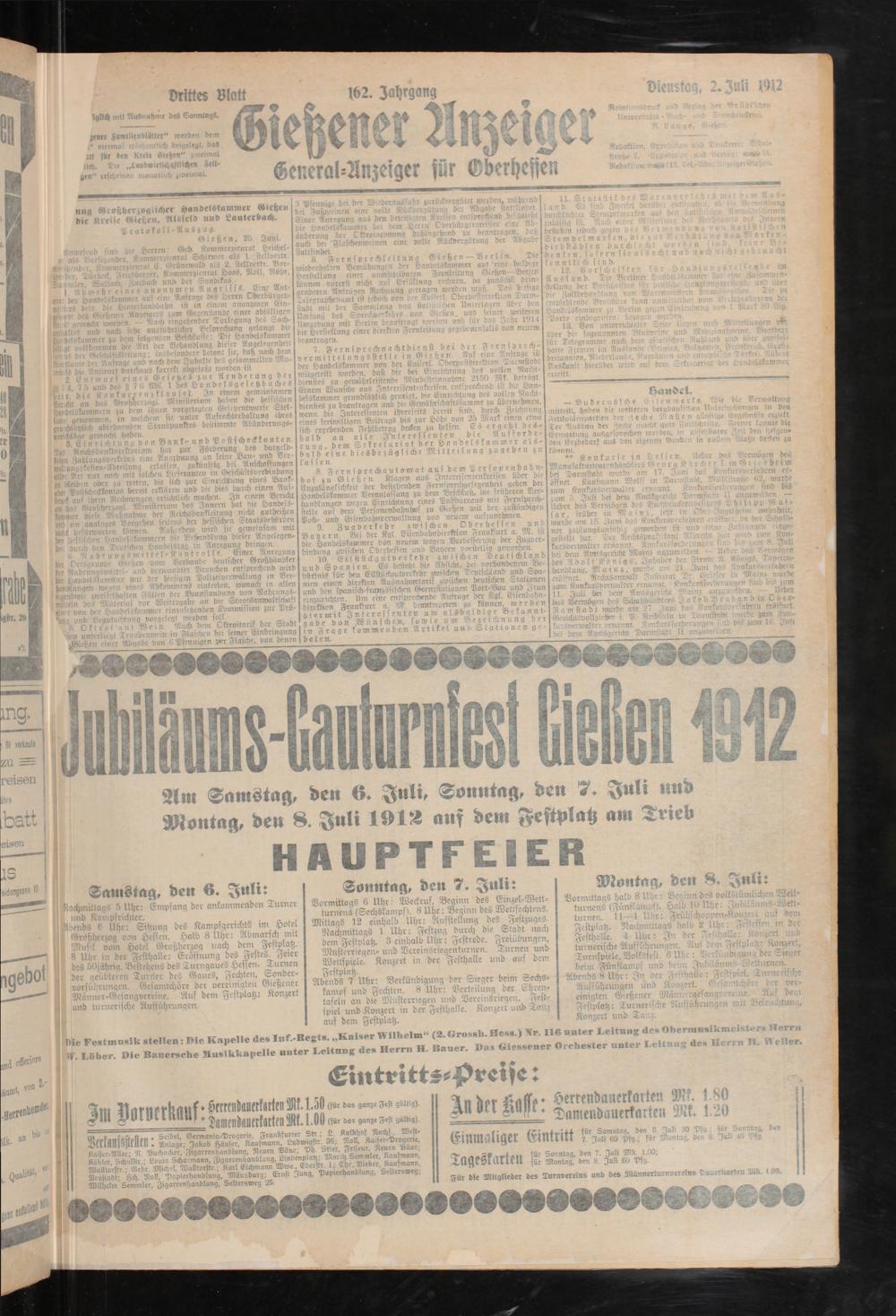 eimgten Gießener Mann rgefangvere ae. Auf dem Festplatz: Turnerische Aufführungen mit Beleuchtung, Konzert und Tanz.