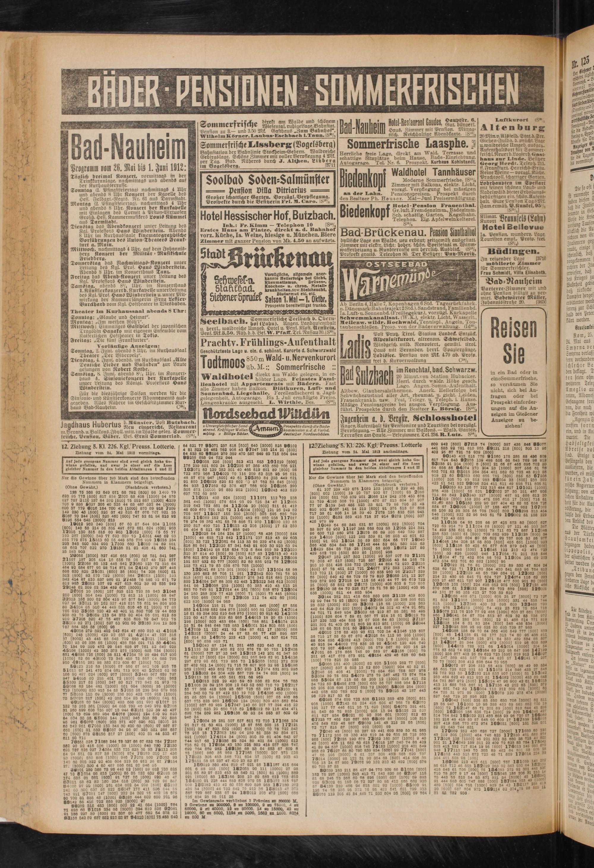 Nur die Gewinne Ober 240 Mark sind den betreffenden Nummern In Klammern beigerügt.
