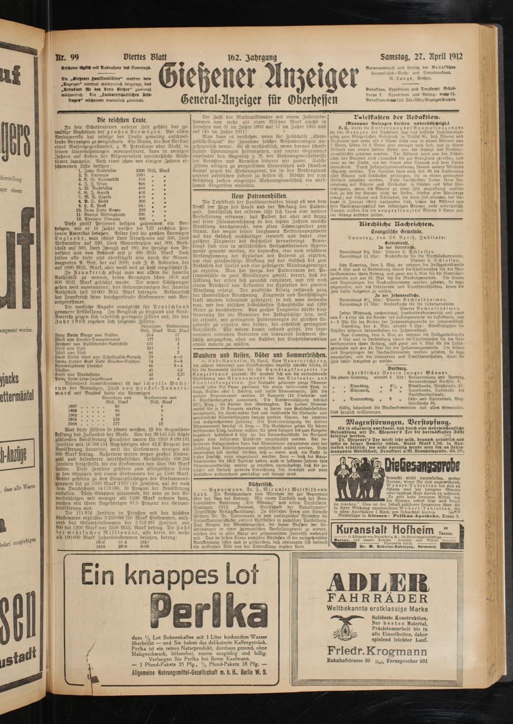 Dv ^Oleheaer fMriUevblfltter** werden dem „Snjfiflrr* viermal wöchentlich beigelegl, bet „Krrtsblea fflr bei Krell Gießen" jroeimal wöchentlich. Tie „landwlrtlchastllche, Lett- freetr* erscheinen monatlich zweimal.