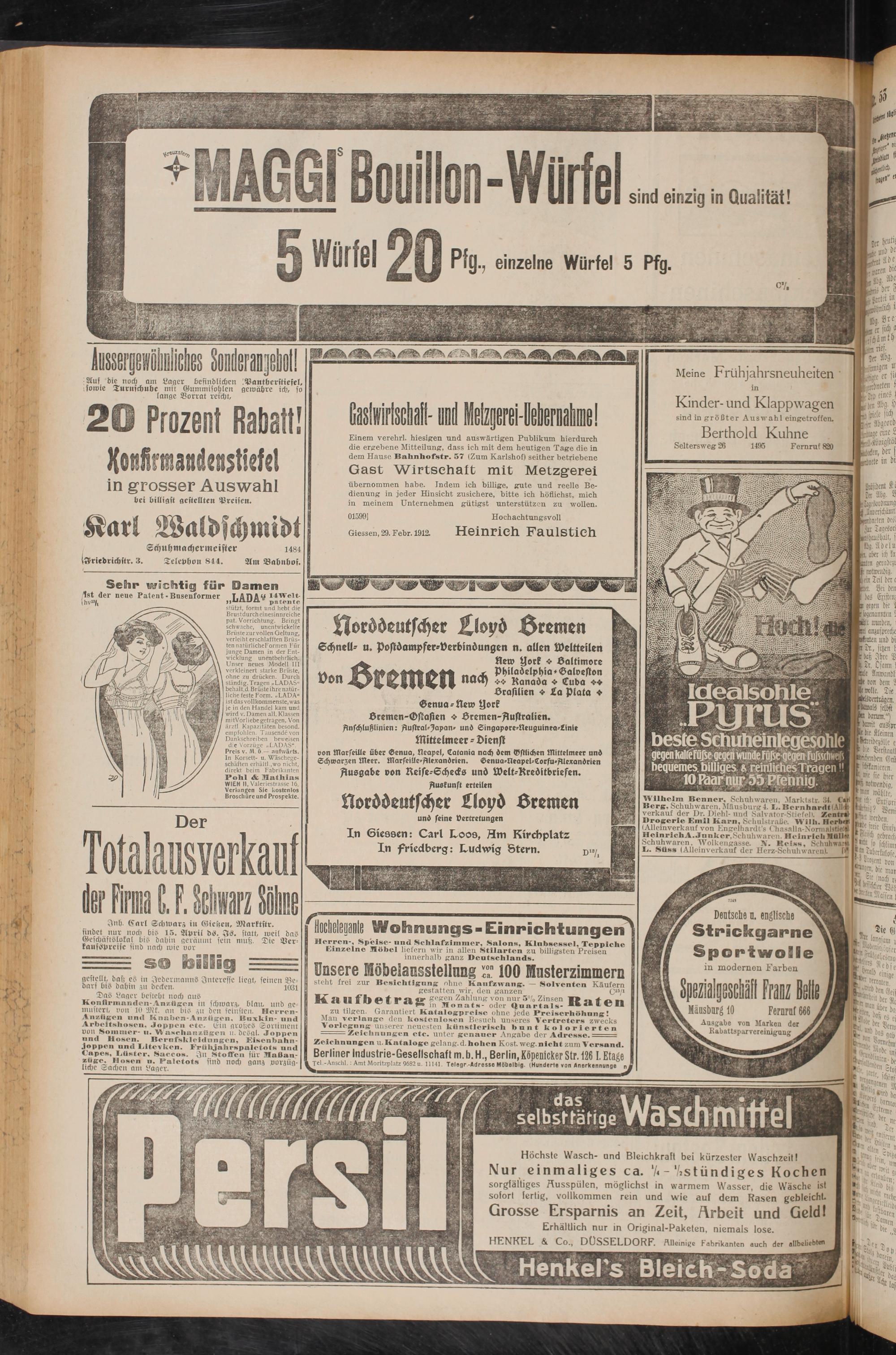 findet nur noch bio 15. April ds. Ns. statt, weil das Geschäfislokal bis dahin geräumt sein muh. Die Per kausspreise sind nach wie vor