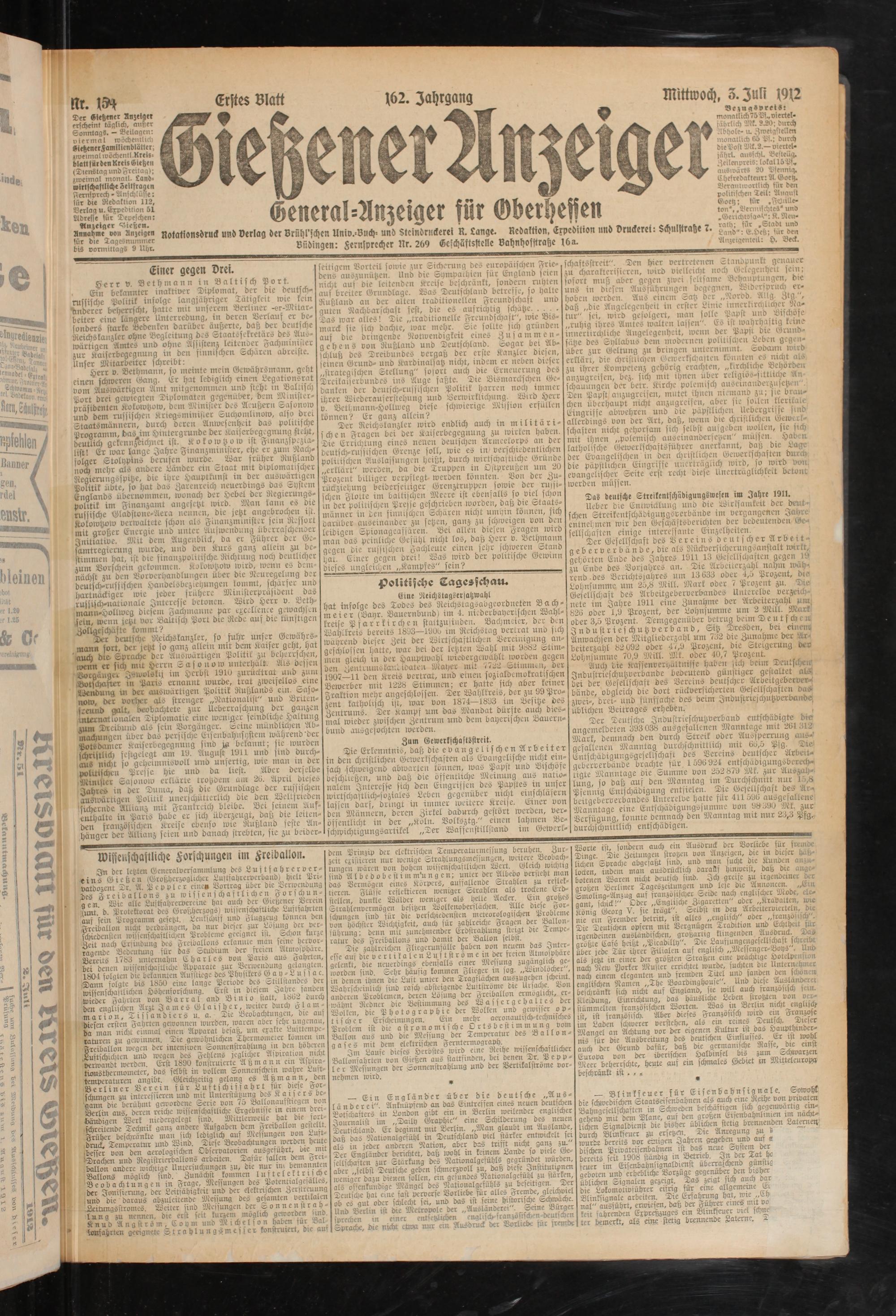 llr. fAf Erster Blatt 162. Jahrgang lNittwoch, 3. Juli 1912