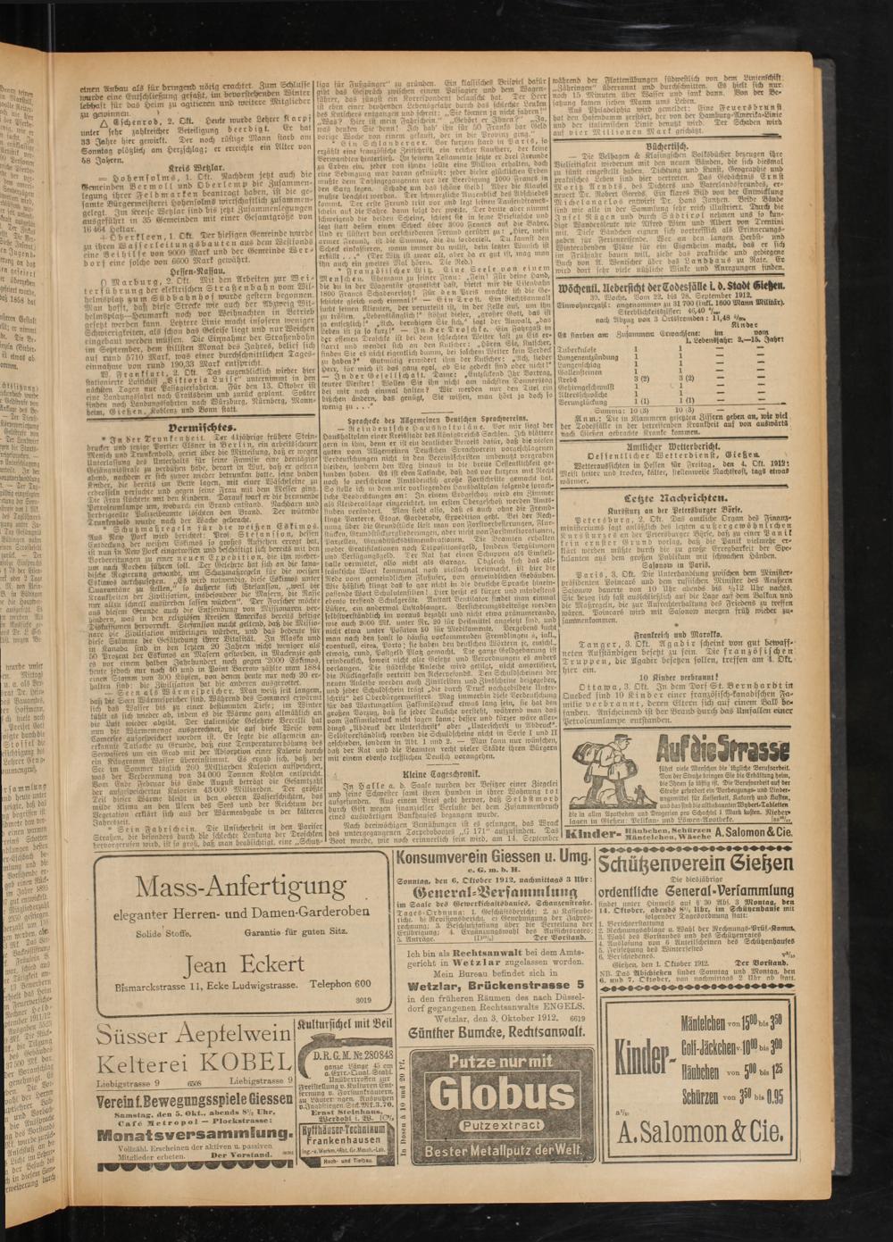 Gießen, den L Oktober 1912. Ter Vorstand. NB. Tas Abichieneu findet Sonntag und Montag, den ß und 7. Oktober, von nachmittags 2 Ubr ab statt.