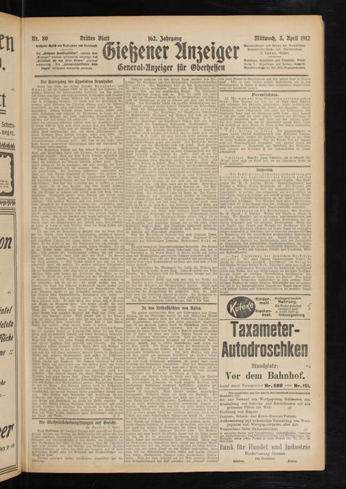 Mittwoch, 3. April 1912