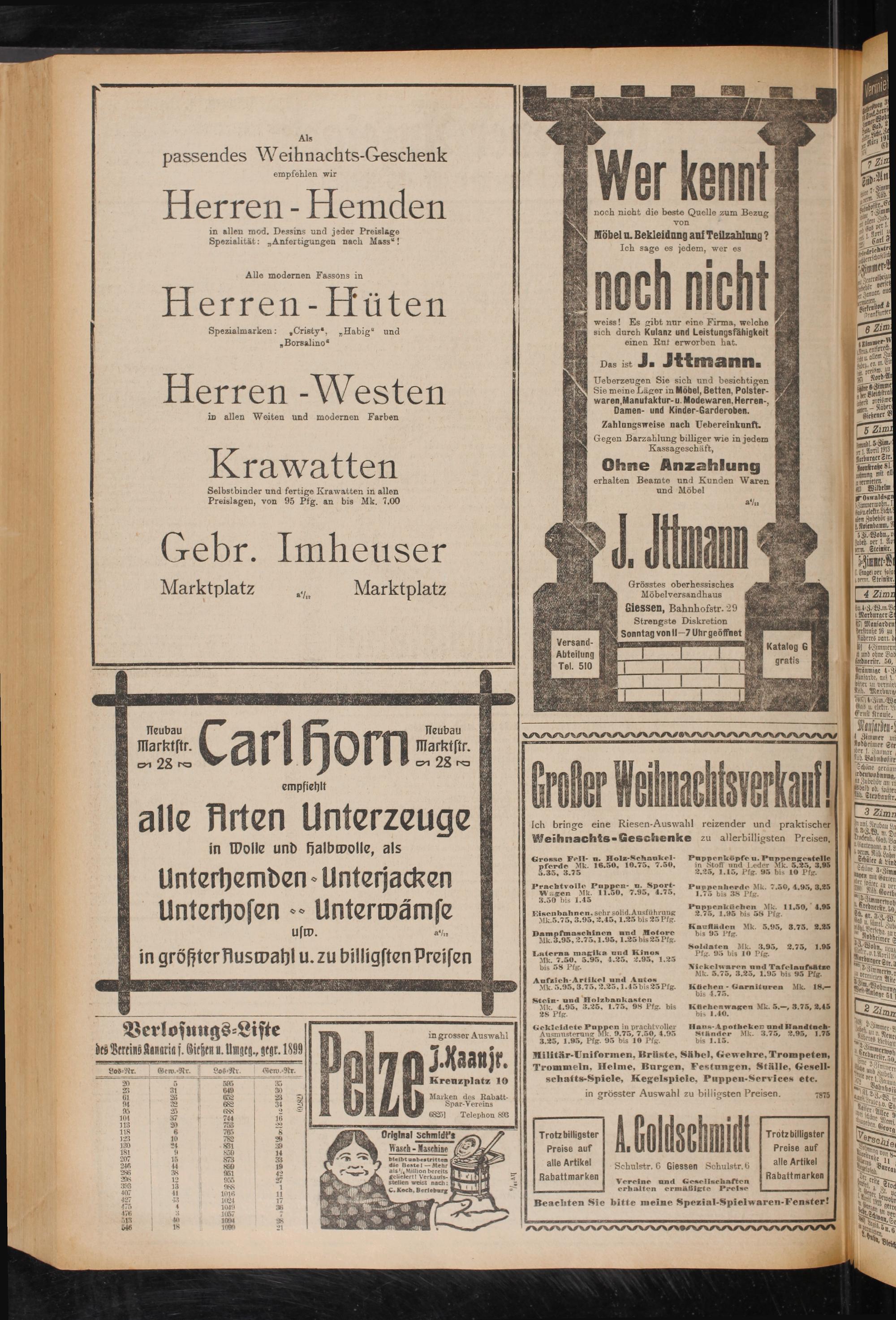 Preislagen, von 95 Pfg. an bis Mk. 7.00