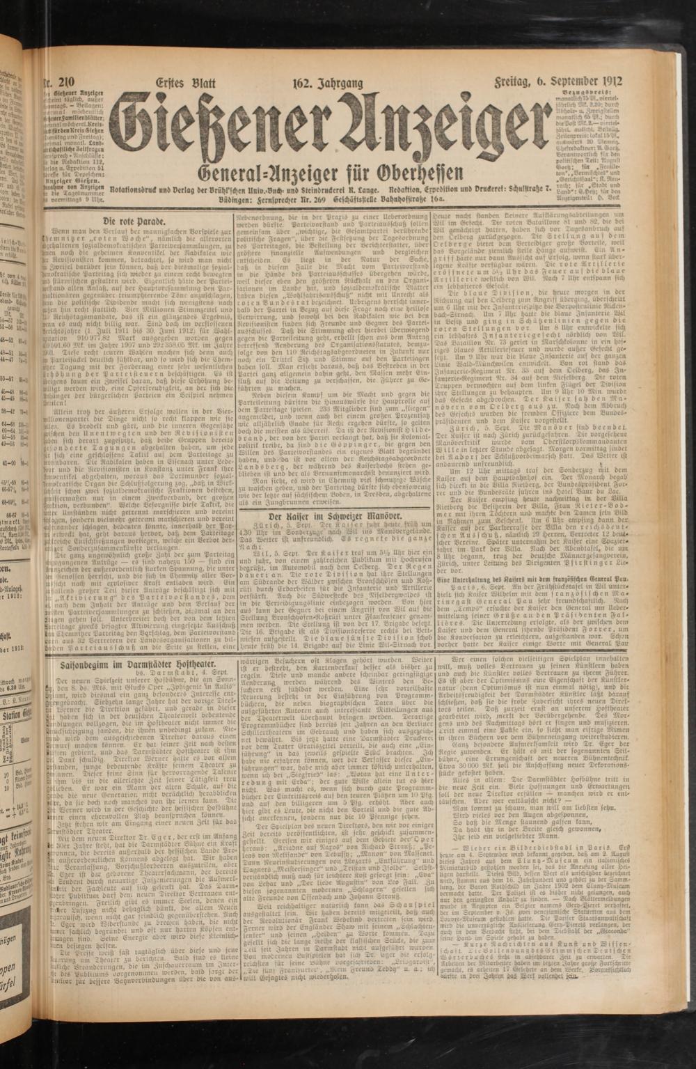 ic. 2|0 Erstes Blatt 162. Jahrgang Zreitag, 6. September 1912