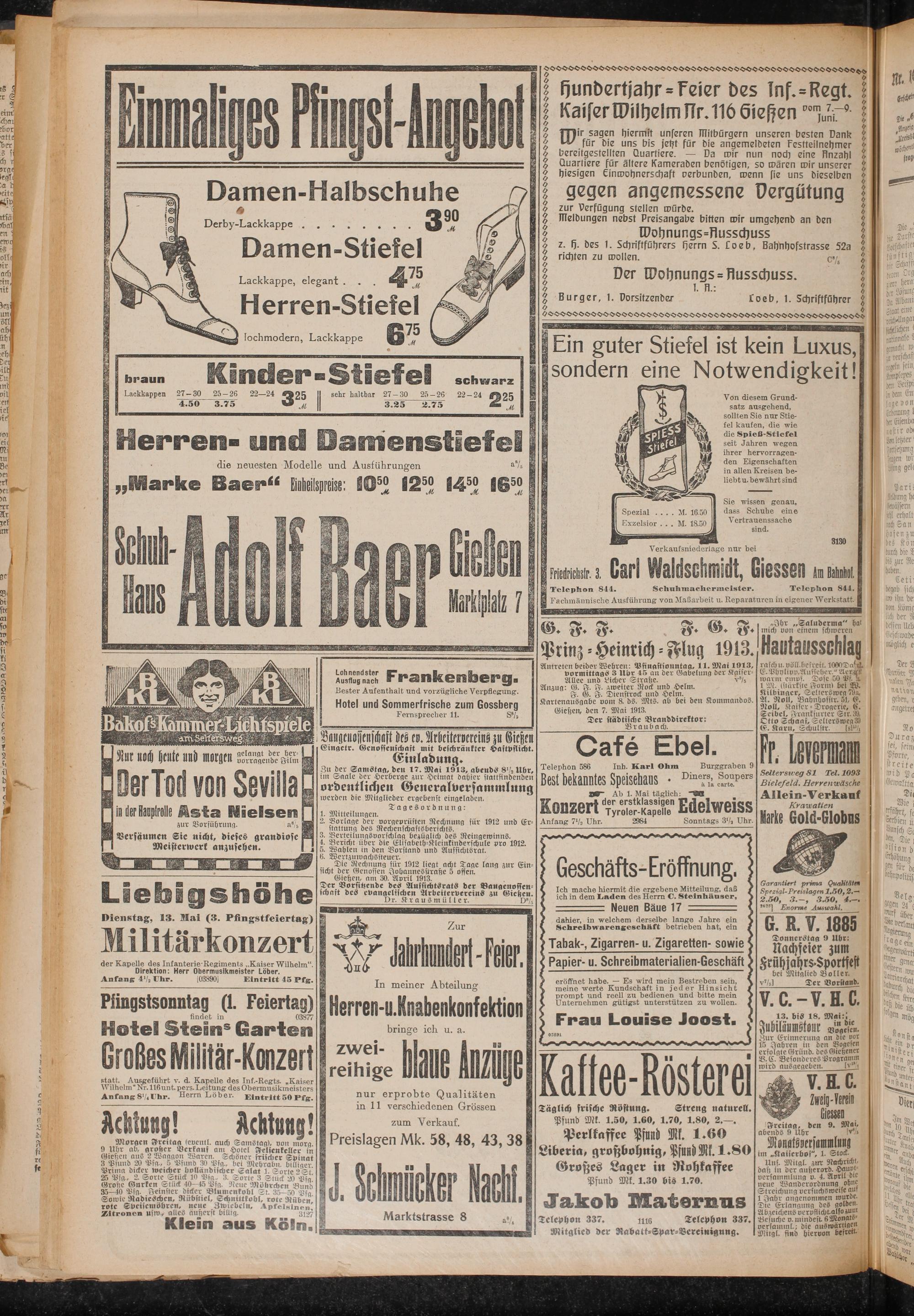 Läebigshöhe Dienstag, 13. Mai (3. Pfingstfeiertag) Militärkonzert der Kapelle des Infanterie-Regiments ..Kaiser Wilhelm“. Direktion: Herr Obermusikmeister Löben