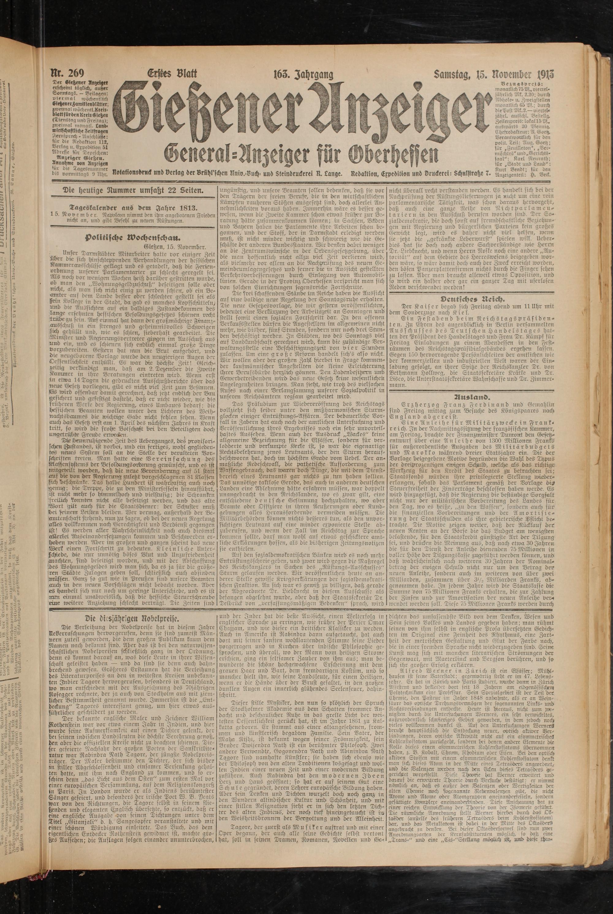 Die heutige Nummer umfaßt 22 Setten.