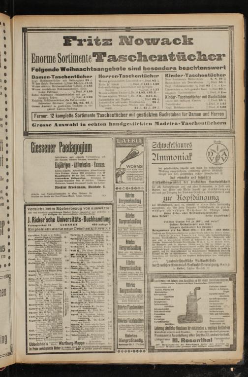 WW - IbilnltD - Erna Kleine Klassen. Arbeitsstunden. Abendkumu. Gnte KHolge Ostern lind erreichten von 17 Kandidaten 1« Ihr Ziel, teilweise mit be dealendem Zeitgewinn. Frequenz im Sommer-Krmeelcr 1W13: 43 Schüler. Stüicn-i •Referenz.. besond. Giessener) durch den Leiter: Direktor Brackemann, Bleichstr. 6.