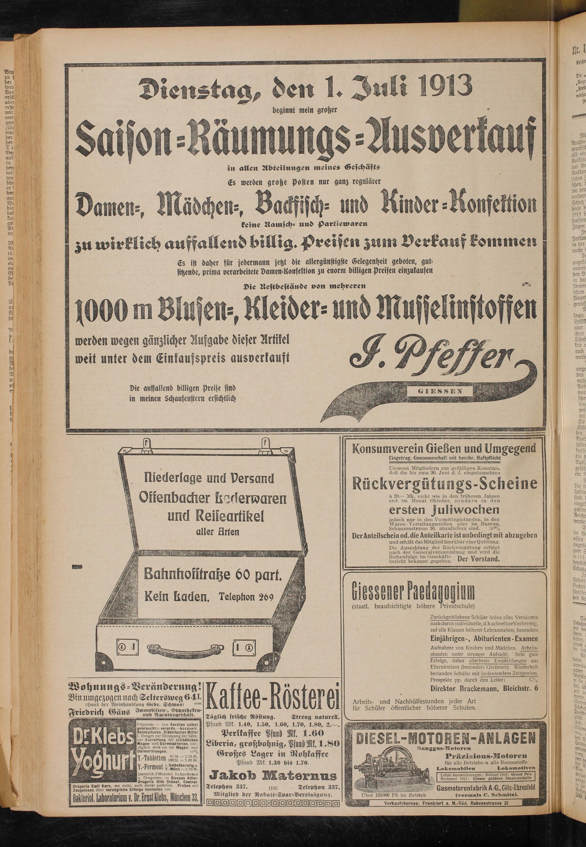 Y.-Tabletten ÄS-SJfc Y.-Ferment ÄtbJr2Ä: (ausreich.3 Monate). In Apotheken u. Drogerien; in Giessen Adler- Drogerie Otto Schaaf, Central- Drogerie Emil Karn, wo nicht, auch direkt portofrei. Proben mit Zeugnissen über vorzügliche Erfolge kostenlos von Bakteriol. Lataloriom ?. Dr. Ernst Klebs, München 33.