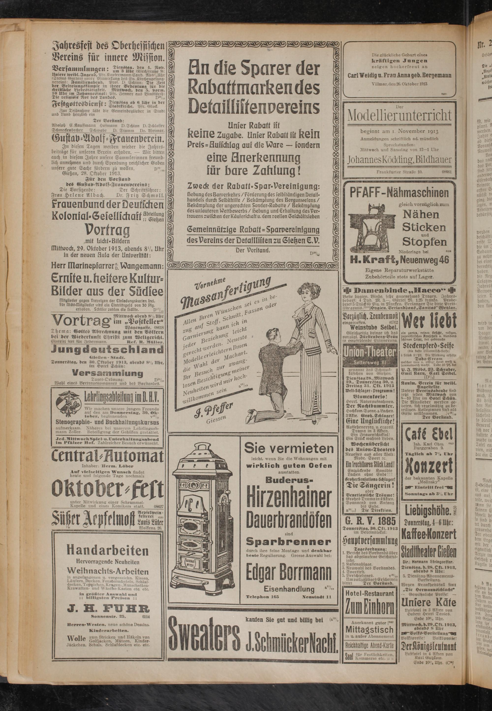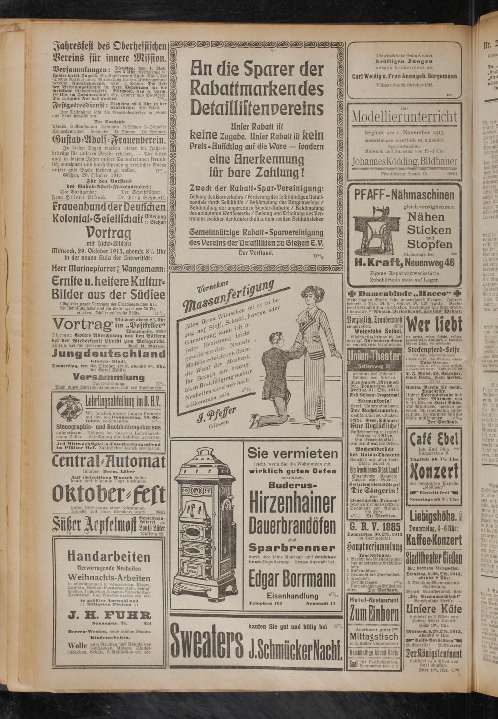 Tienstag, b.28. Cft. 1913, abends 8 Ubr: