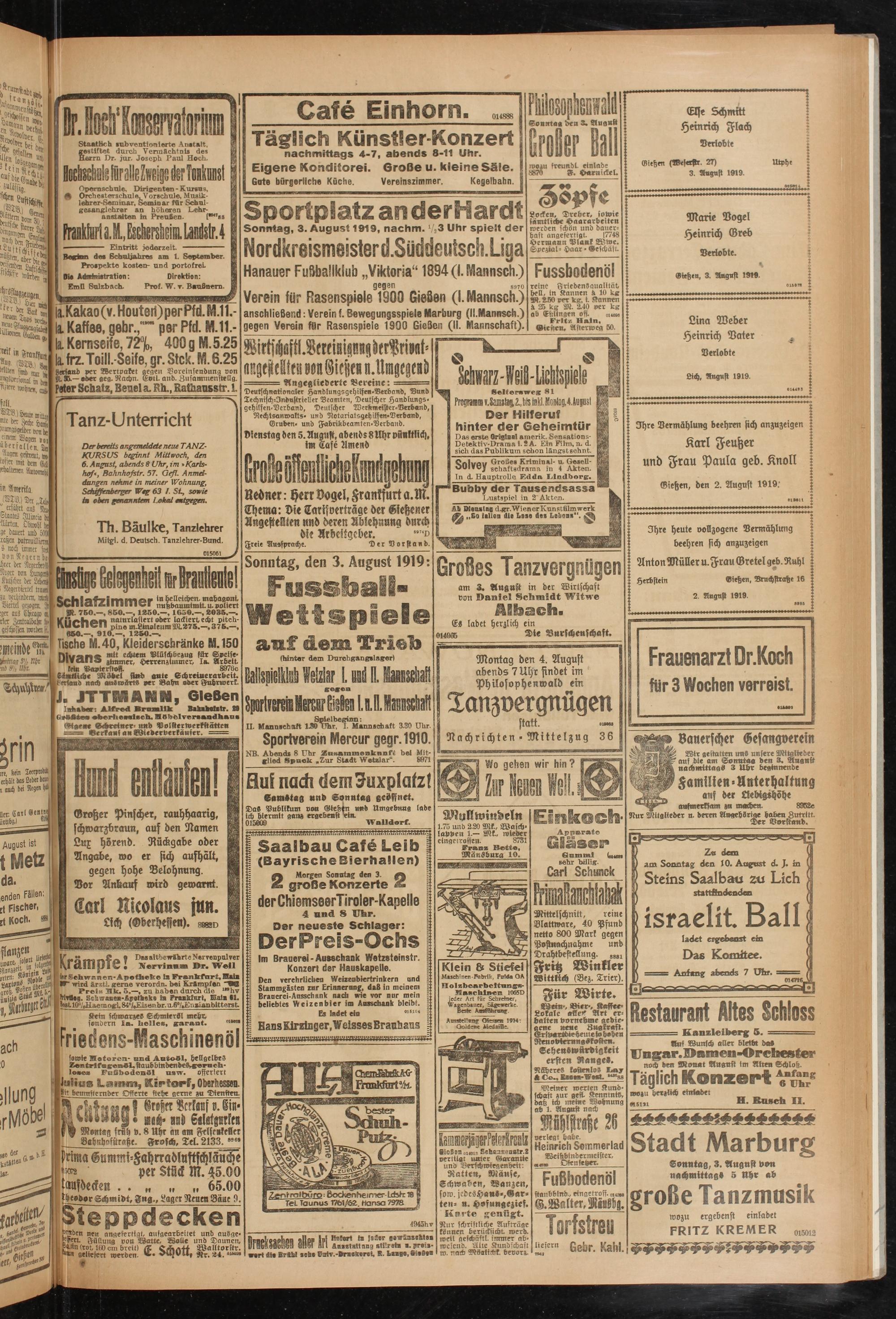 Gießen, 3. Angnst 1919.