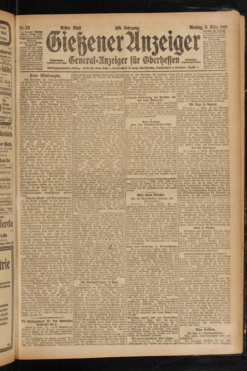 Seiltnpreife: für Srtltdje "Anzeigen 25ßf.,Hirau»roärttge 30 «Lst, für Reklamen SWf.l. - nebft 2O°o'Zeue- rung«zufäilag;Platzvor- fehrift 20 % Au'fchlag. Sauptfdiriitlcüer: Aug. Doeq Verantwortlich für Politik: Aug. Goetz, für den übrigen Teil: Dr. Reinhold Zenz; für den Anzelgenteü: v. Beck; sämtlich in Gießen