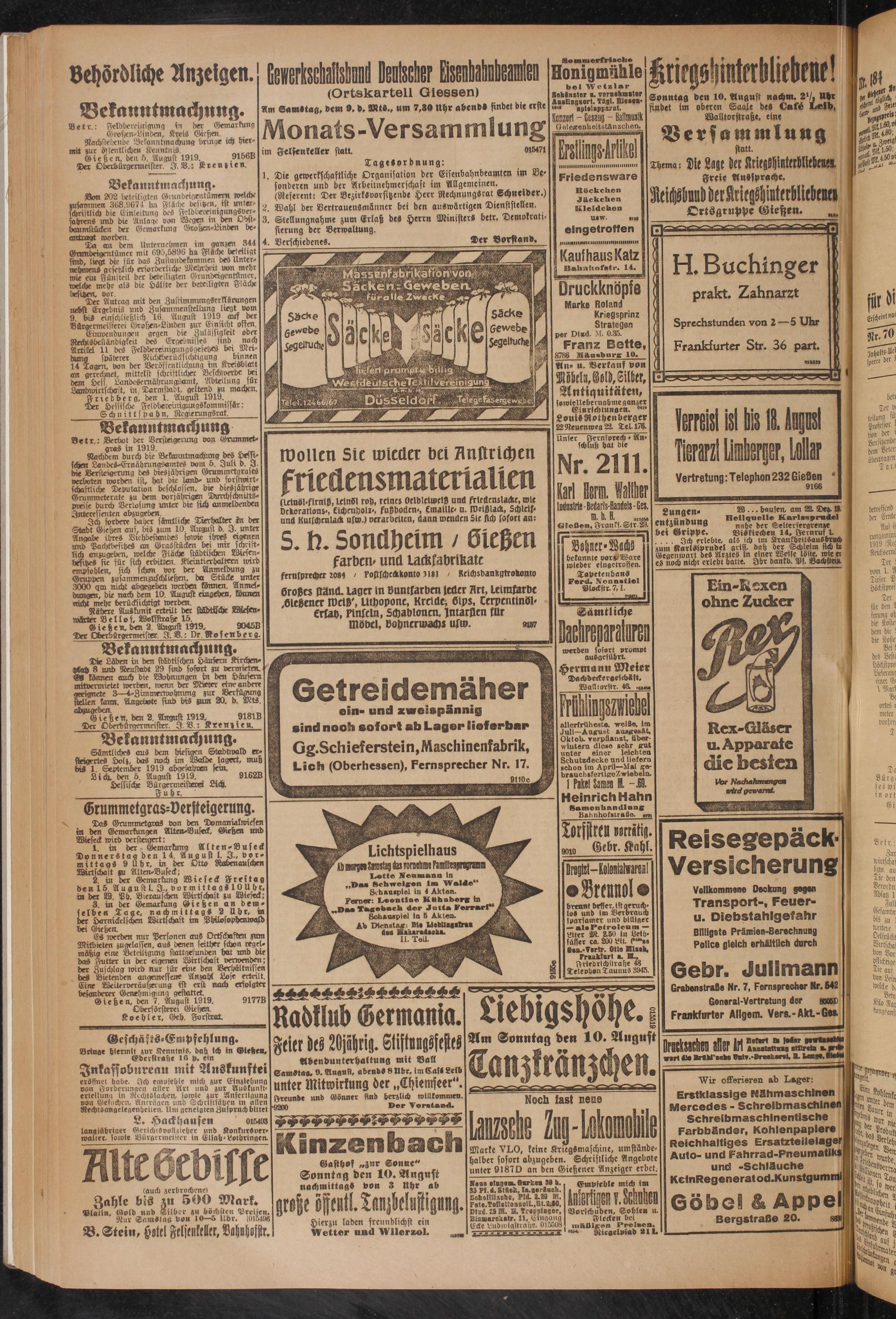Gießen, den 7. August 1919.
