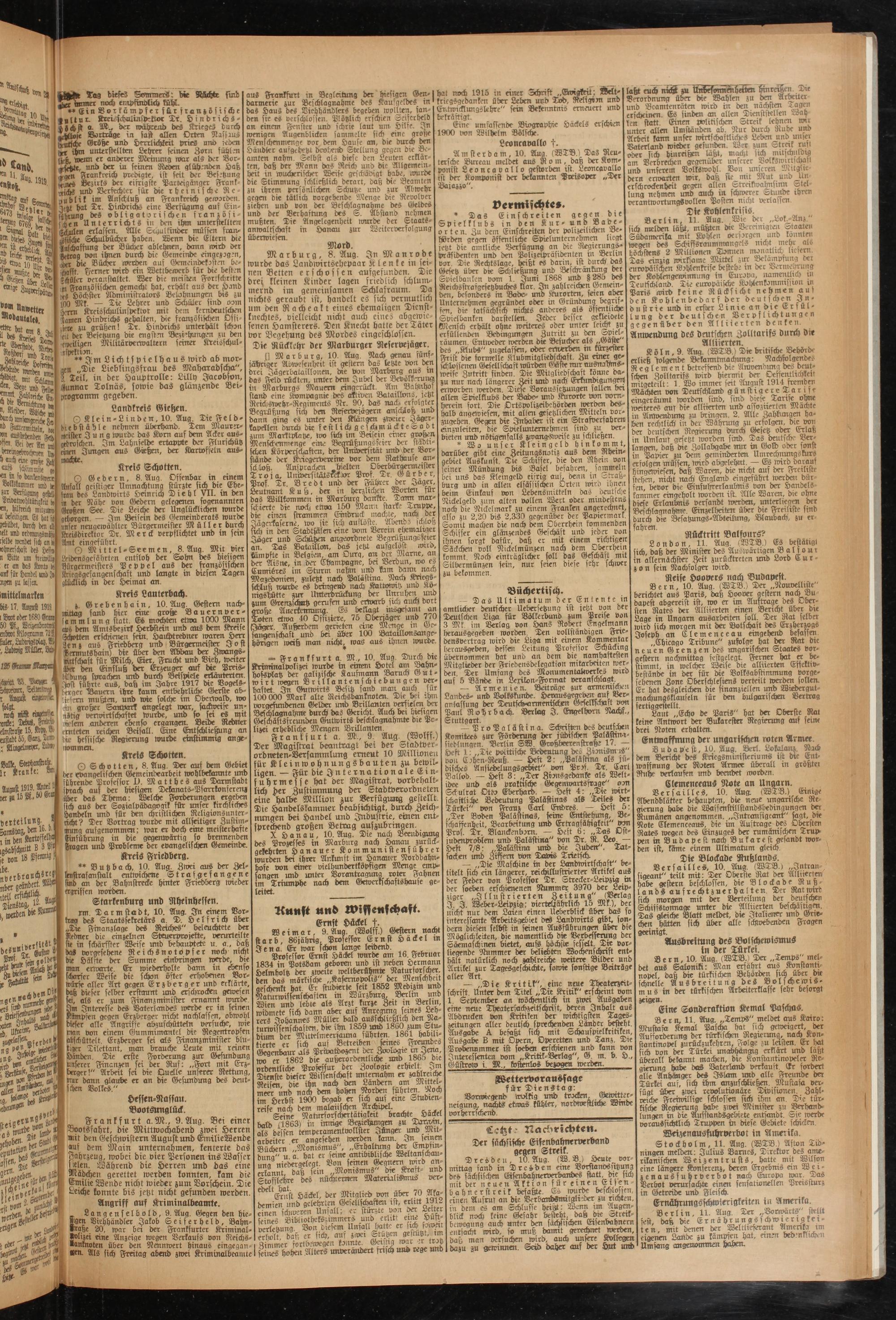 Frankfurt a.M., 9. Aug. Bei einer Bootsfahrt, die Mittwochabend zwei Herren mit den Geschwistern August und EmilieWende auf dem Main unternahmen, kenterte das Fahrzeug, wobei die vier Personen ins Wasser nelen. Während die Herren und das eine Mädchen gerettet werden konnten, kam die Emilie Wende nicht wieder zum Vorschein. Die Reiche konnte bis jetzt nicht gefunden werden.