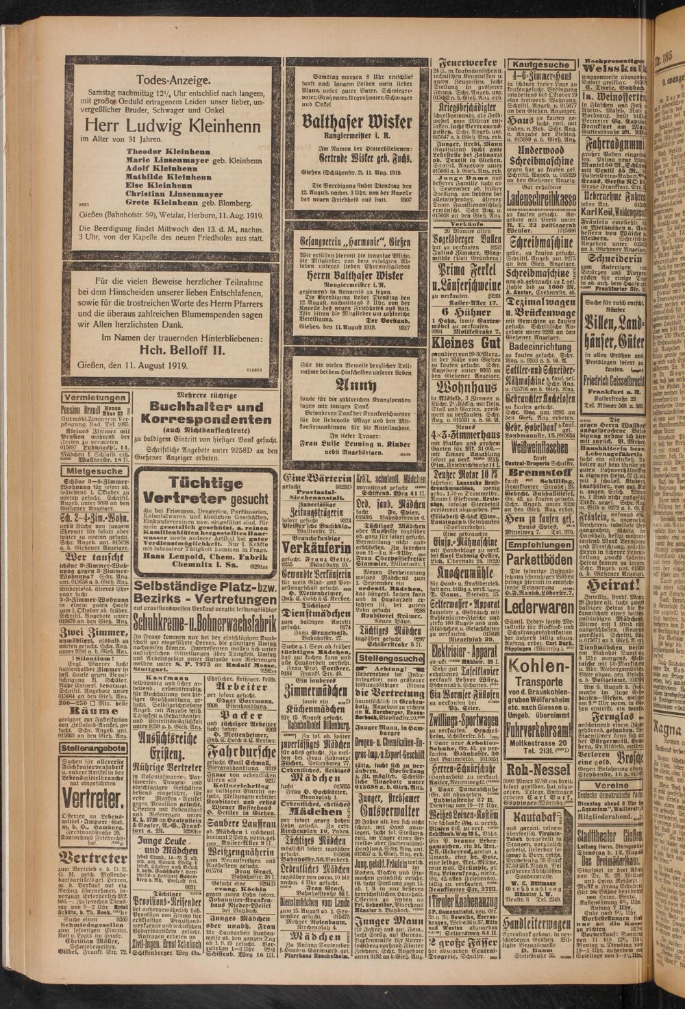 Gießen, den 11. August 1919.