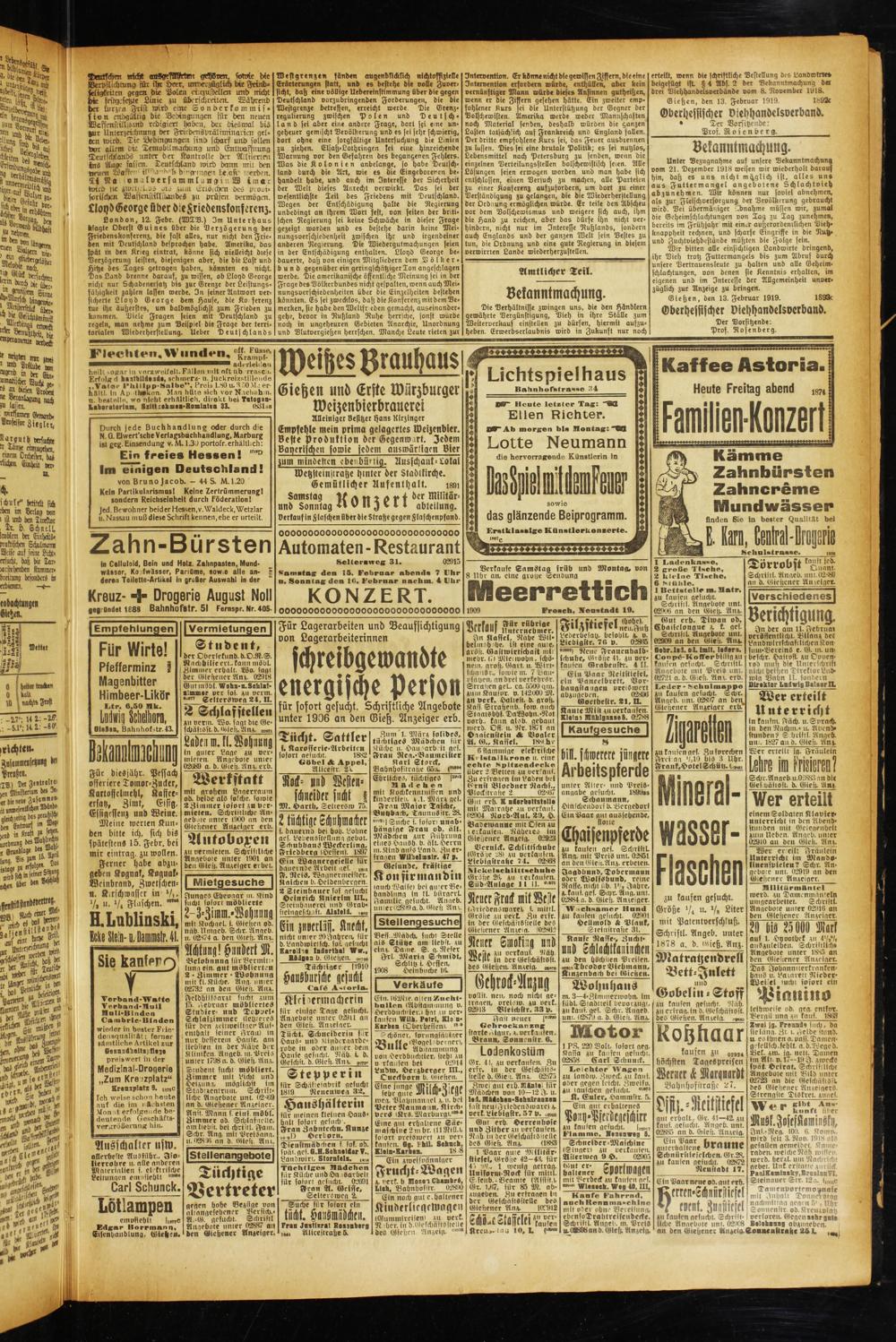 züglich zur Anzeige zu bringen. Dietzen, den 13. Februar 1919.