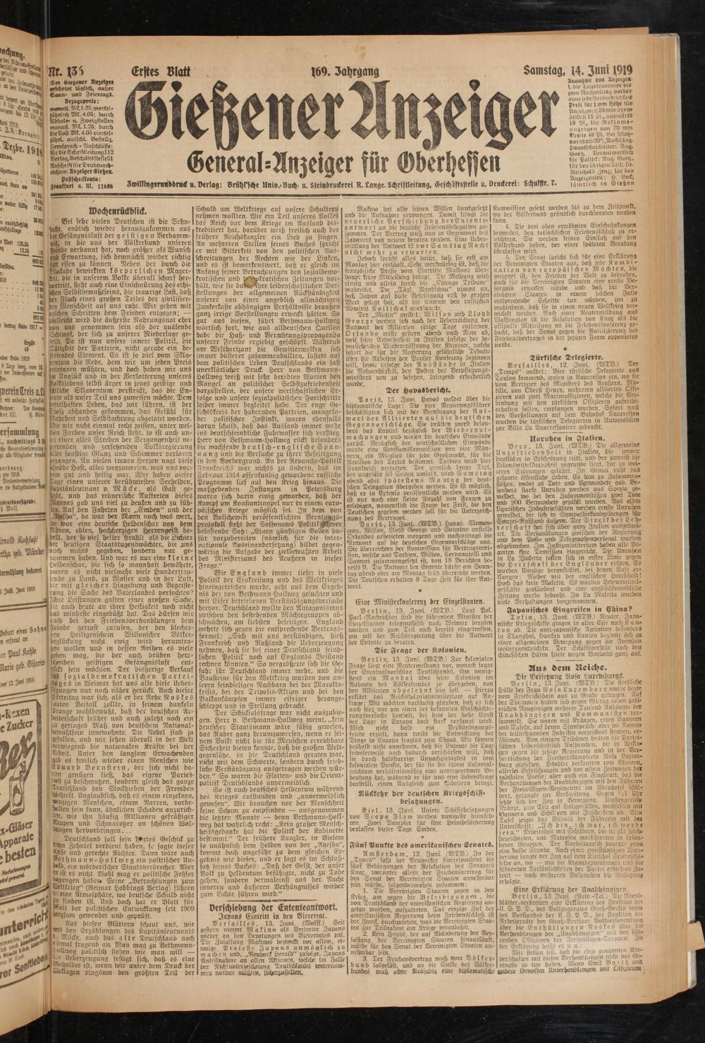Samstag, 14. Juni 1919