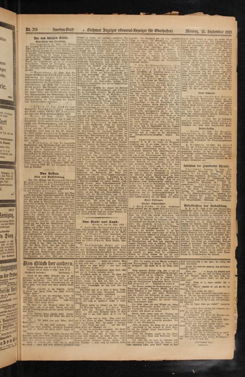 Rr. 215 Zweites Statt . Gießener Anzeiger (General-Anzeiger für Oberhellen) Montag, {5. September M