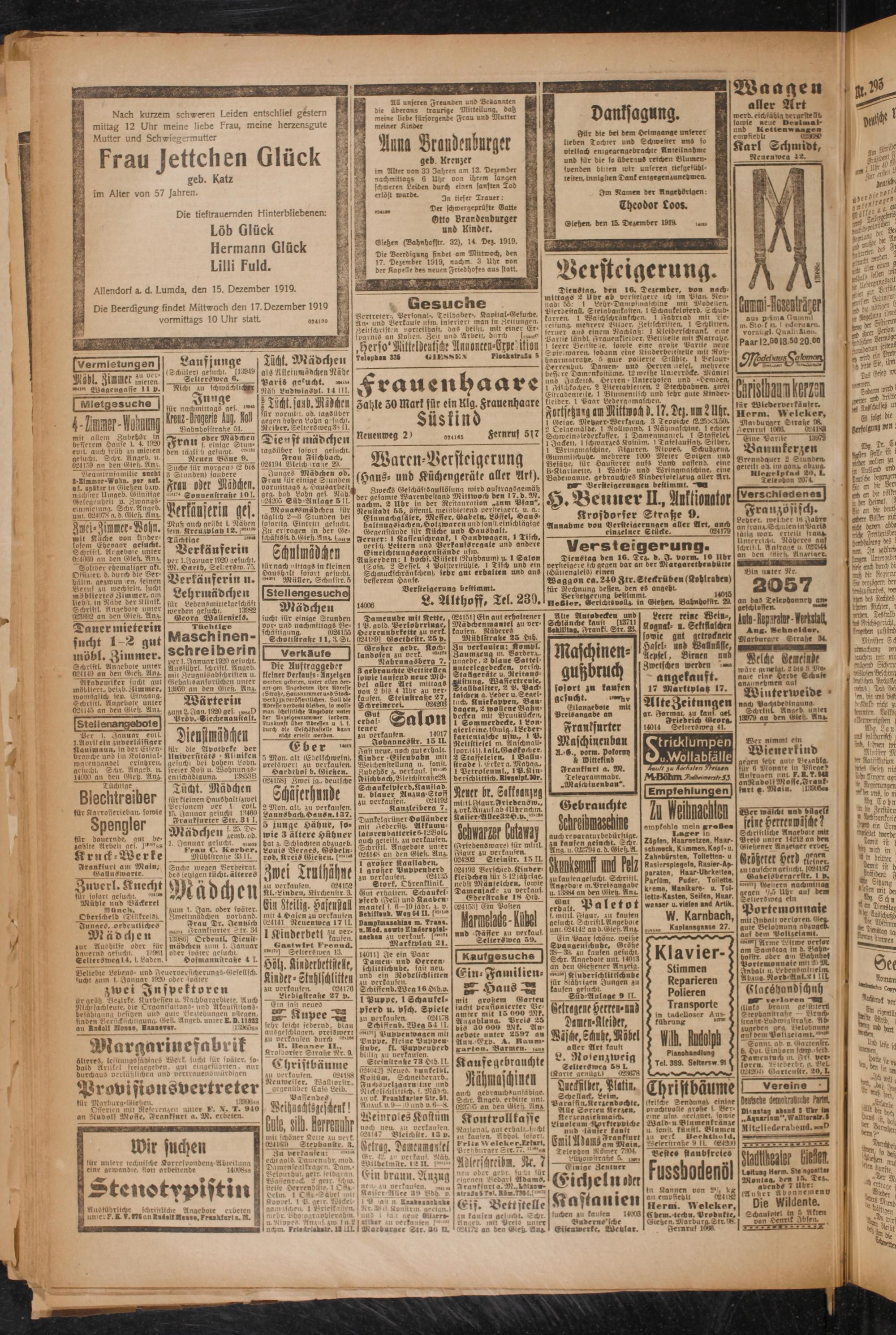 Gießen tDahnhofstr. 32), 14 Dez. 1919. Die Beerdigung findet am Mittwoch, den 17. Dezember 1919, nachm. 3 Uhr von der Kapelle bes neuen Friedhofes aus statt.
