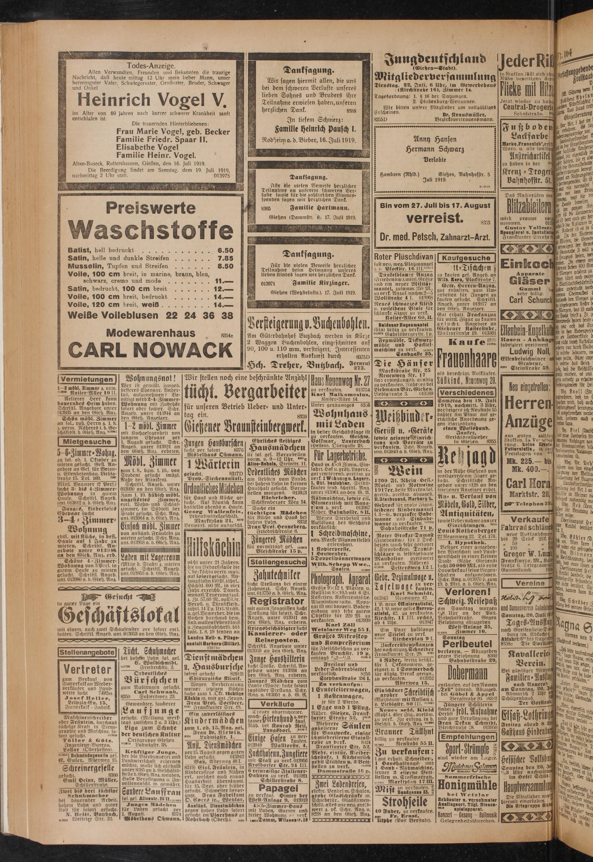 Giehen lWetzsteinstr.), 17. Juli 1919.