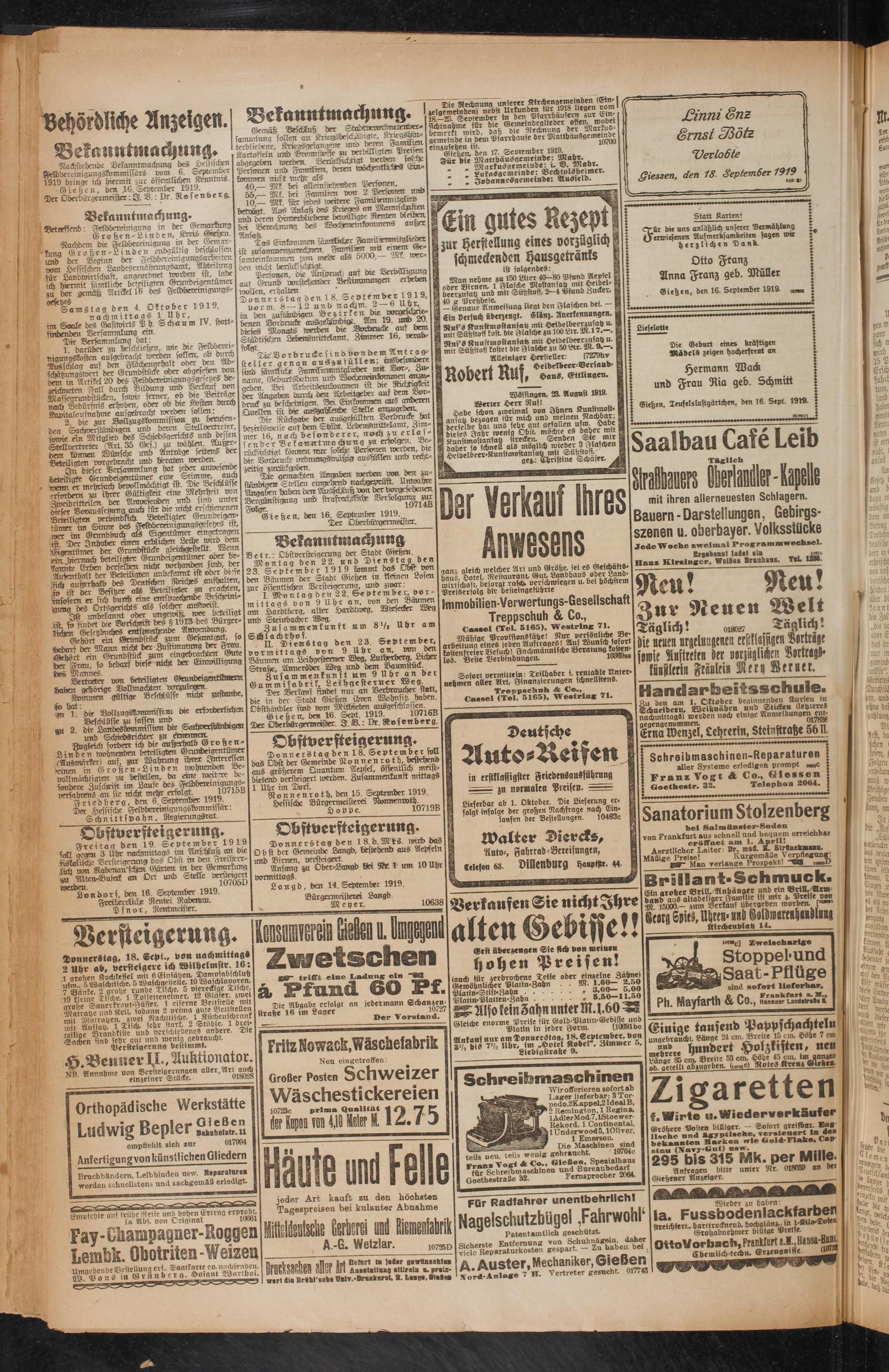 Gießen, den J.6. September 1919. Der Oberbürgermeister:Lf. V.: Dr. Rosenberg.
