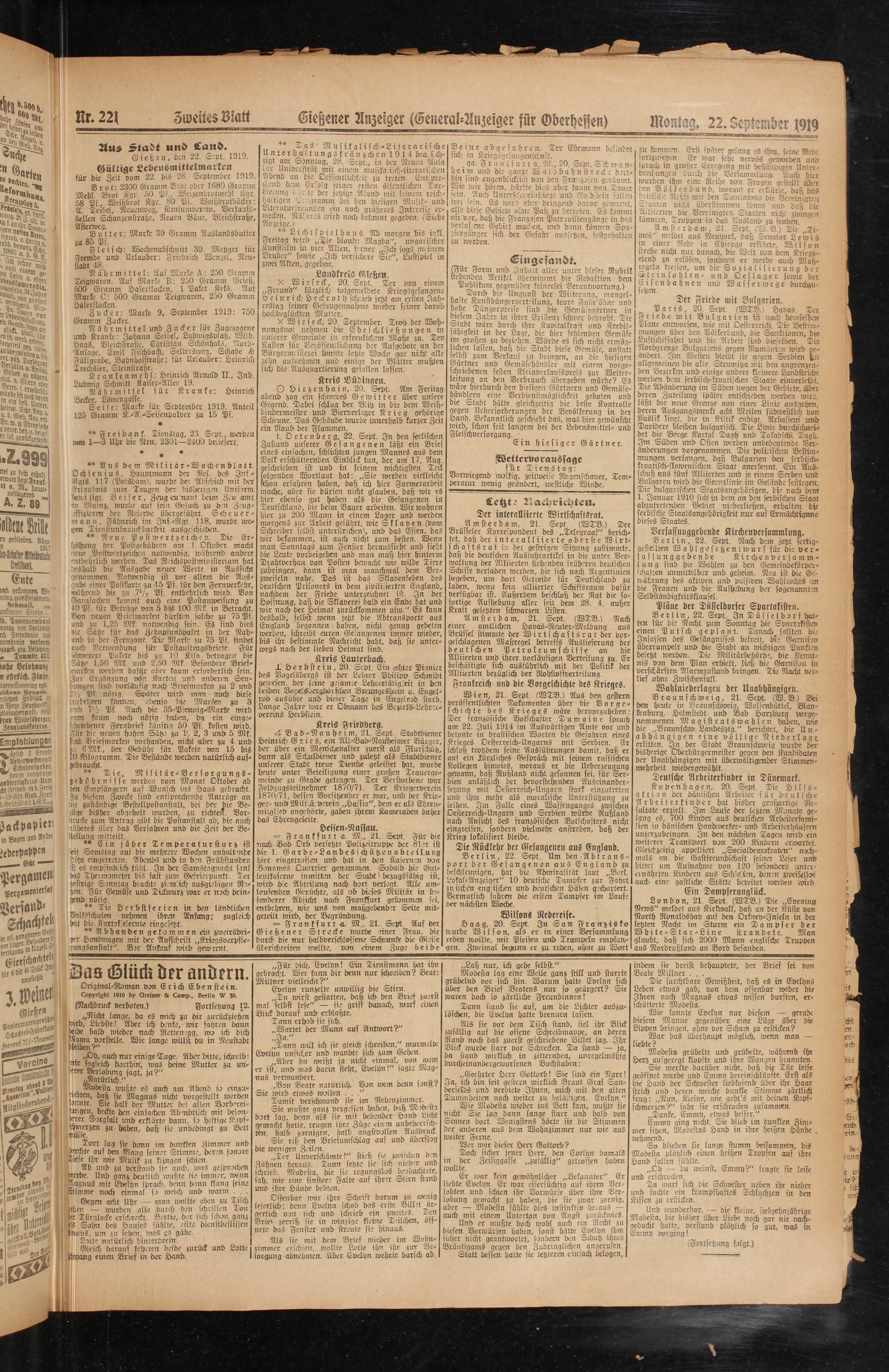 Mntag, 22. September 1919