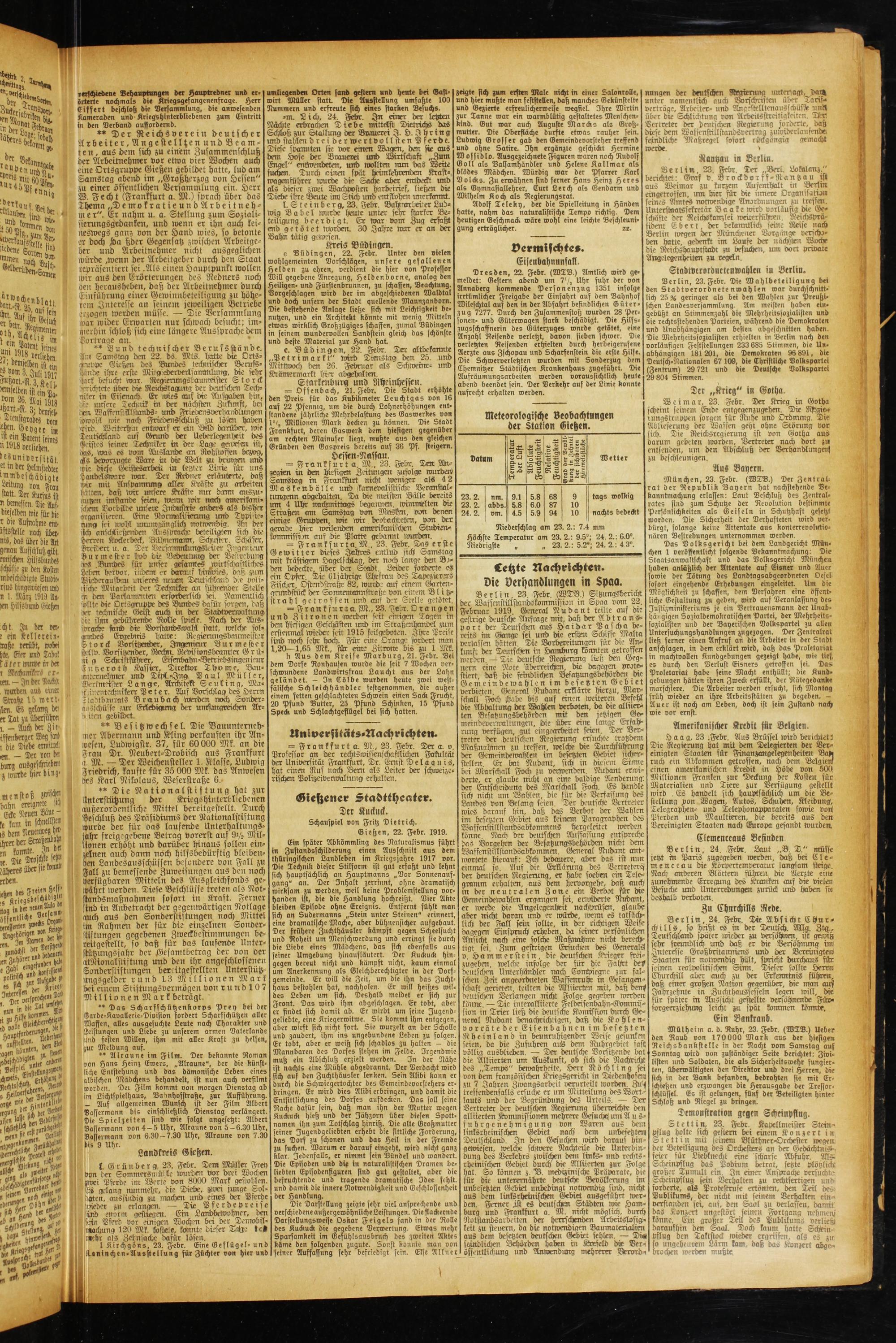 Berlin, 23. Febr. (WTB.) Sitzungsbericht der Wasstnstillstandskommission in Spaa vom 22. Februar 1919. General Nudant teilte auf die gestrige putsche Arrfvage mit, baft der Abtransport der Deutfth-en ans Haidar Pascha bereits im Gange sei und die erften Schiffe Malta verlassen hätten. Die Vorbereitungen für die Ankunft der Deutschen in Hamburg könnten getroffen werden. — Tie deutsche Regiertmg lstss den Gegnern eine Note überreichen, die dagegen prote»- ftiert, baft die feftrdlichen Besatzungsbehördei, die Gemeindewahlen im besetzten Gebiet verbitten. Genera! Nudant erklärte hierzu, Marschall Foch iftybc bis auf einen weiteren Befehl die Äbl)altung der Wahlen verboten, da die alliierten Besatzungsbehörden mit den jetzigen Ge- meinbeöermaltungen, die über eine lange Erfahrung verfügen, gut ein gearbeitet seien. Ter Vertreter ber deutschen Regierung ersuchte trotzdem Maßnalftnen zu treffen, welche die Durchführung der Gemeindewahlen im besetzten Gebiet sicher- stellen. Er bat Nudant, sich in diesem Sinne bei Niarschall Fock) zu verwenden. Nudant erwiderte, er glaube nicht an eine baldige Aenderung: der Entscheidung des Marschall Foch. Es handle sich nicht um Wahlen, die für die Berfassmig des Lairdes von Belang seien. Der deutsche Vcrtrtter wies darauf hin, daß das Verbot der Wahlen int besetzten Gebiet aus keinem Paragraphen des Waffensttllstandsabkommens hcrgeleitct werden könne. Nach der deutschen Auffassung entspreche das Vorgehen der Besatzungsbehorden nicht dem Waffensti'llsbandsabkommen. General Nudant antwortete hierauf: Ich bedauere, aber das ist nun einmal so. Wuf die Erklärung des Vertreter^ der deutsckren Regierung, er habe soeben ein Telegramm erhalten, aus dem hervorgehe, daß auch in der neutralen Zone em Verbot für die Gemeindewahlen ergangen sei, erwiderte Nudant, er werde die Angelegonhett nachprüfen, glaube aber nicht daran imb er würde, meint es tatsächlich der Fall sein sollte, in ber richtigen Weise dagegen Anspruch erheben, da seiner versönlich"n Ansicht nach eine solche Maßnahme nicht berede tigt sei. Zum geitrigen Ersuckien des Generalck v. Hammerstein, die deutschen 5l^rieger ftei- zugeben, welche infolge der für die Fahrt de- deutscknm Unterhändler nach Comipiegne zur falschen Zeit angeordneten Waffenruhe in Gefangen- fdiaft geritten, teilten die Alliierten mit, daft bem# deutsck;en Verlangen nicht Folge gegeben nnrden könne.—Tie interalliierte Feldeisenbahn-Kommis- sion in Trier lieft die deutsche Konrission durch General Nudant benachrichtigen, baft die Kohlenvorräte der Eisenbahnen im besetzten Rheinland in beunruhigender Weise gesunken seien, da die Zufuhren aus dem Ruhrgebiet fast völlig ausblicbcn. — Der deutsche Vorschende bat die Älliierten um Auskunft, ob sich die Nachricht des „Temps" bewahrheite, Herr Röchling sei von dem französischen Kriegsgericht in Diedenhoseui zu 7 Jahren Z>vangsarbeit Derurteilt worden. Zu'< tressendensalls ersuche er um Müteilung des Wort-- lauts und der Begründung des Urteils. — Der Vertreter der deutschen Regierung überreichte den alliierten Kvmmisswnen mehrere Gesuches nm A u s- fuhrgenehmrgung von Waren aus dem linksrheinischen Gebiet nach dem unbesetzten Deutschland. In den Gesuchen unrb darauf hin- gewiesen, welche schwere Nachteile die Unterbindung des Verkehrs zwischen dem links- und reck)ts- rheinisck>en Gebiet durch die Alliierten zur Folge hat. So können z. "B. medizinische Präparate, die für die unterernährte deutsche Bevölkerung im