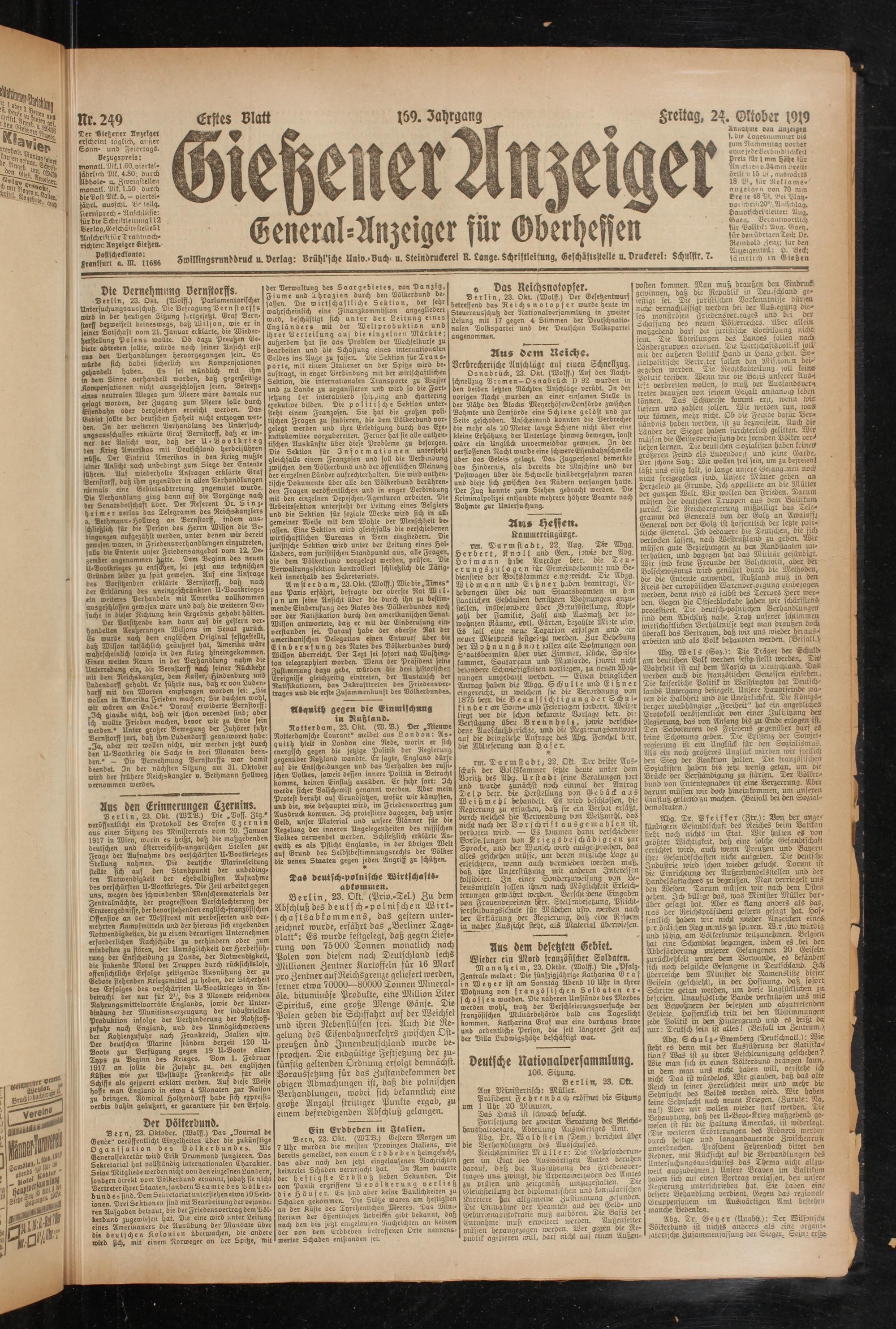 Erstes Blatt 159. Jahrgang §reltag, 2<. Oktober 1919