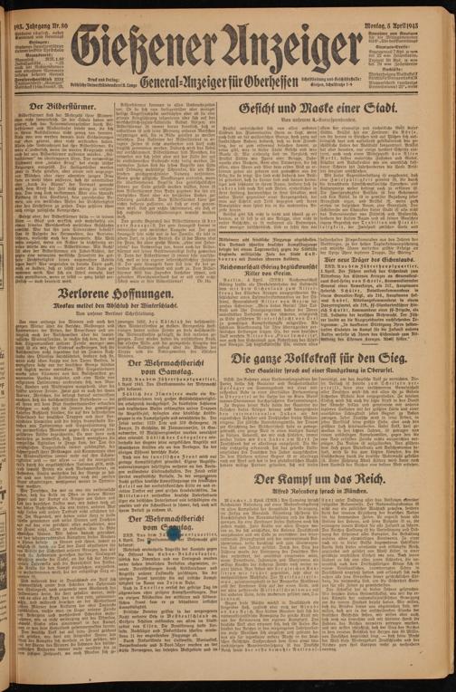 DRB. Aus dem Führerhauptquartier, 3. April 1943. Das Oberkommando der Wehrmacht gibt bekannt: