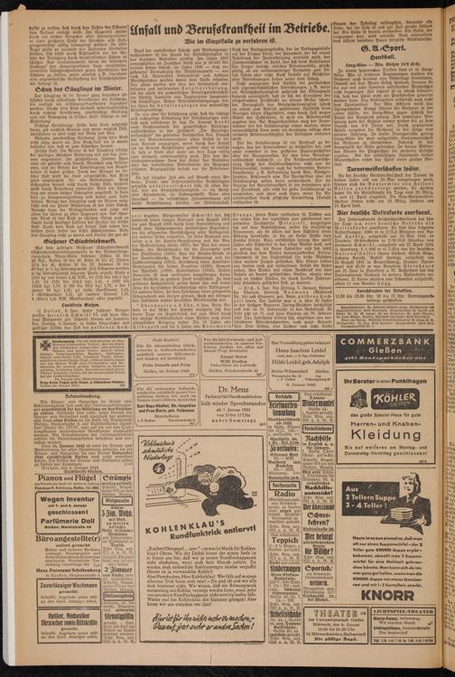 Houpstchriftleiter: Dr. Friedrich Wilhelm Lange. Stellvertreter bei Hauptschriftleiters: Ernst Blumschem. Verantwortlich für Politik und Bilder: Dr. Fr. W. Lange; für das Feuilleton: Dr. Hans Thtzriot; für Stadt Gießen, Provinz Wirtschaft und Sport: Ernst Blumschein.