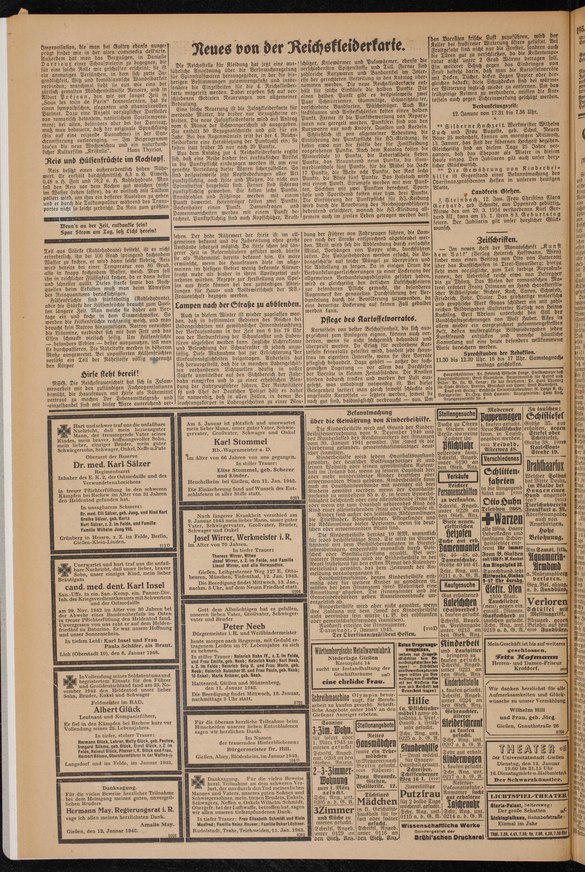 Gießen, den 12. Januar 1943.