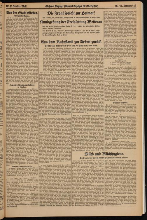 Nr. 13 Zweiter Blatt Gießener Anzeiger (General-Anzeiger für Gderhesien)16./17, Januar M3