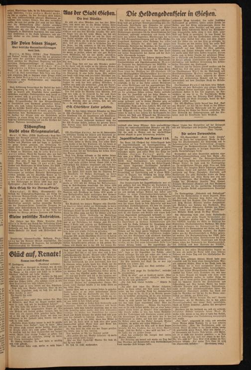 Am 116er-Denkmal auf dem Landgraf-Philipp- Platz fand am gestrigen Sonntagvormittag eine eindrucksvolle Feierstunde zum Gedenken an unsere gefallenen Helden statt. Mit Einheiten der Wehrmacht und den Abordnungen der Partei und chrer Gliederungen vereinigten sich die Hinterbliebenen der Gefallenen, zahlreiche verwundete und kranke Soldaten aus unseren Lazaretten, Abordnungen der in der NS.-Kriegsopferversorgung und im NS.-Reichs- kriegerbund vereinigten alten Soldaten des ersten Weltkrieges, Offiziere der alten und der jungen Wehrmacht, Vertreter der Behörden, die Jugend und viele weitere Volksgenossen vor dem Denkmal zu der soldatisch-schlichten Feierstunde. Dor dem Denkmal hatten Doppelposten des Heeres und der Luftwaffe Ehrenwache bezogen.