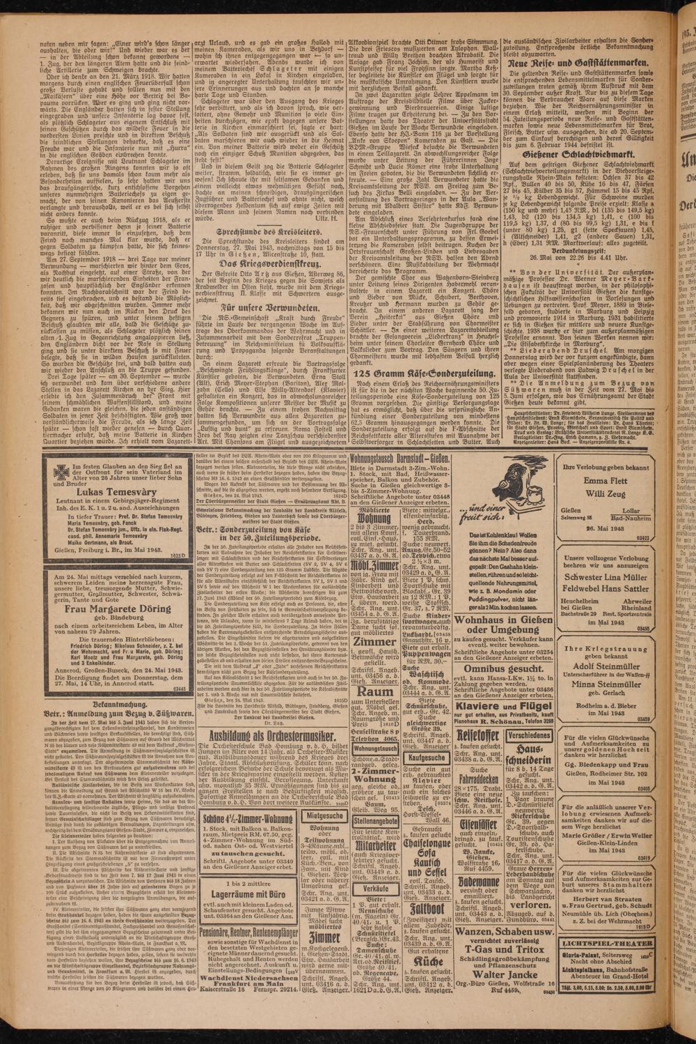 Die Sprechstunde des Kreisleiters findet Donnerstag, 27. Mai 1943, nachmittags von 15 17 Uhr in Gießen, Alicenstraße 10, statt.