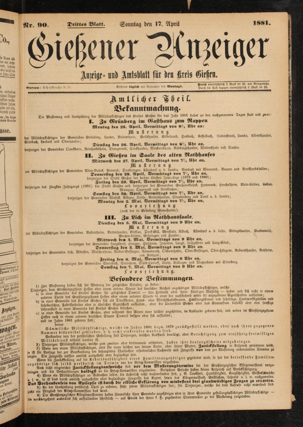 Nr 90. Drittes Blatt. Sonntag ben 17. April 1881.