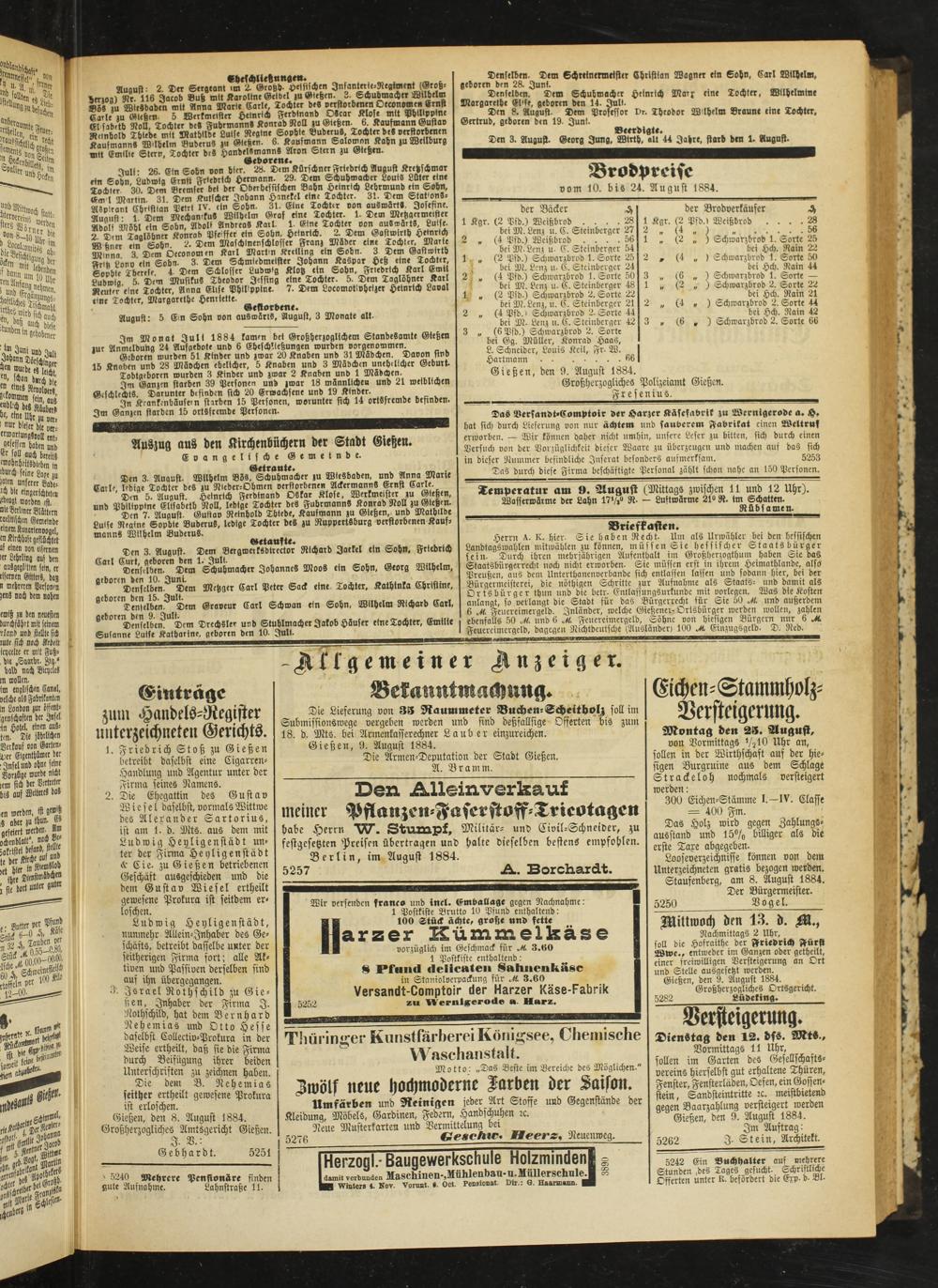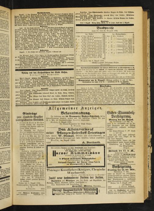 Gießen, den 8. August 1884. Großherzogliches Amtsgericht Gießen.