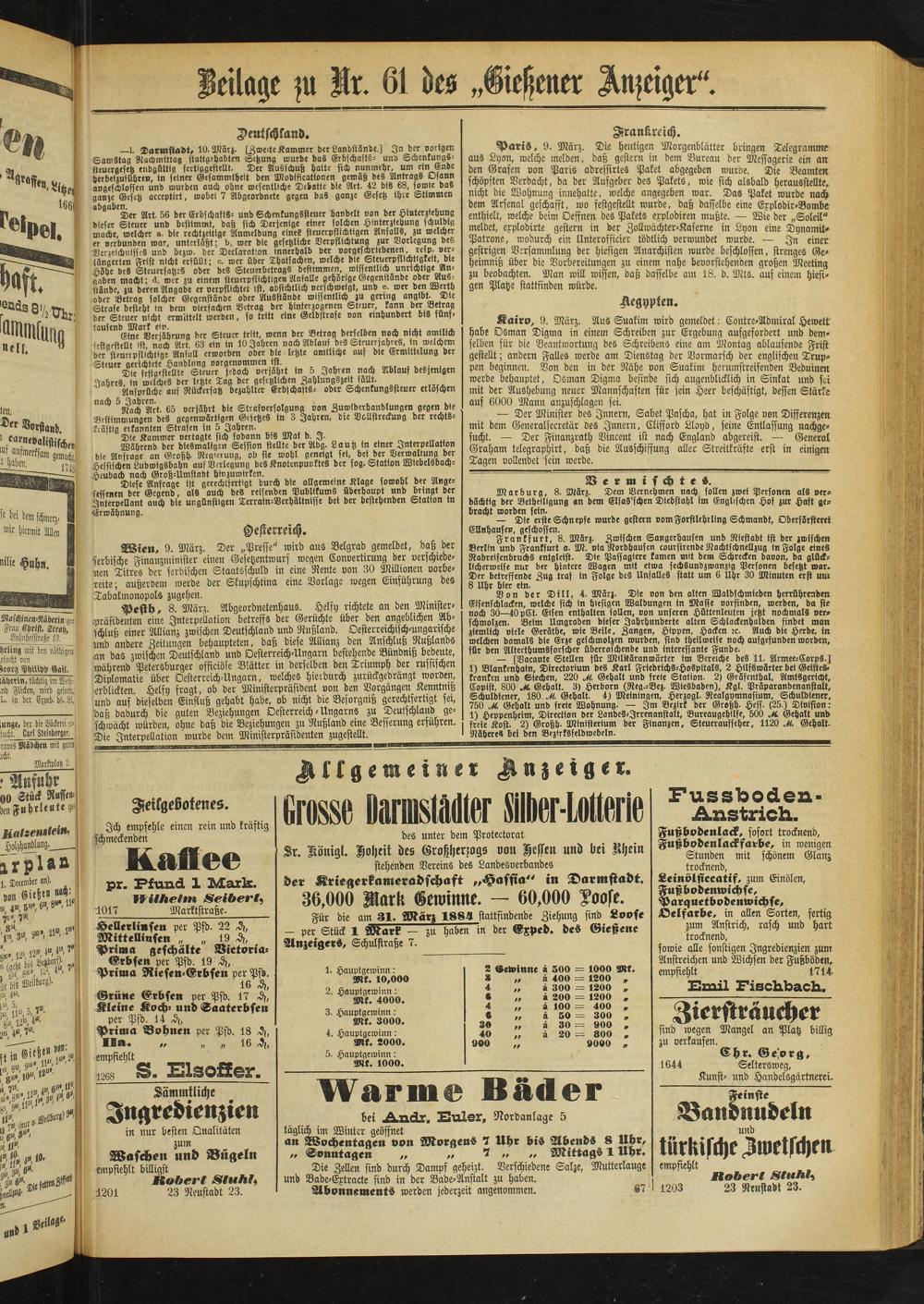 Beilage |ii Ur. 61 des „Gießener Anzeiger".