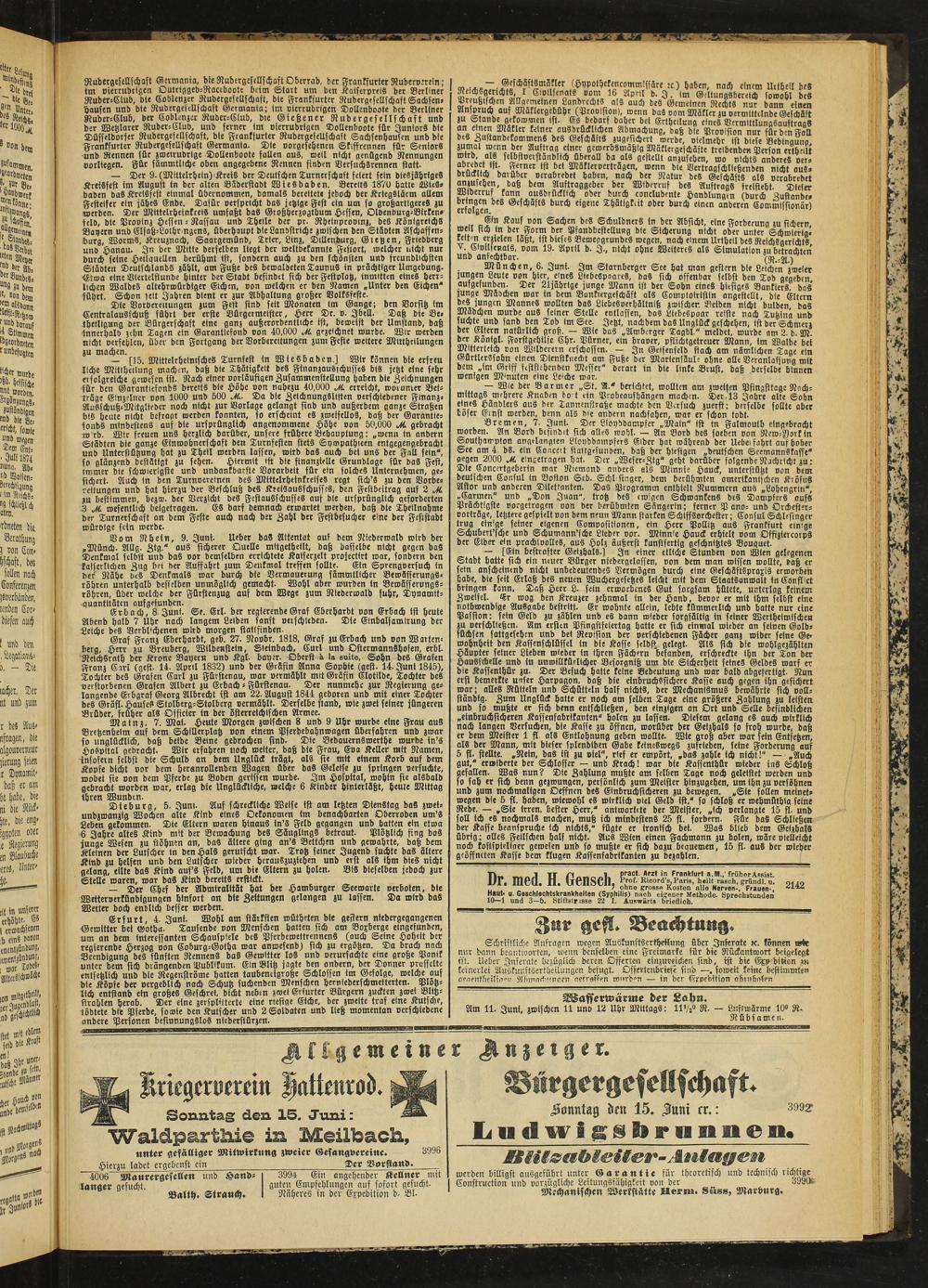 Sonntag den 15. Juni: Waldparthie in Meübach, unter gefälliger Mitwirkung zweier Gesangvereine. 3996 Hierzu ladet ergebenst ein ____Der Vorstand.