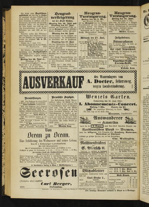 Gießen, den 7. Juni 1884. Großh. Bürqeriüeisterei Gießen.
