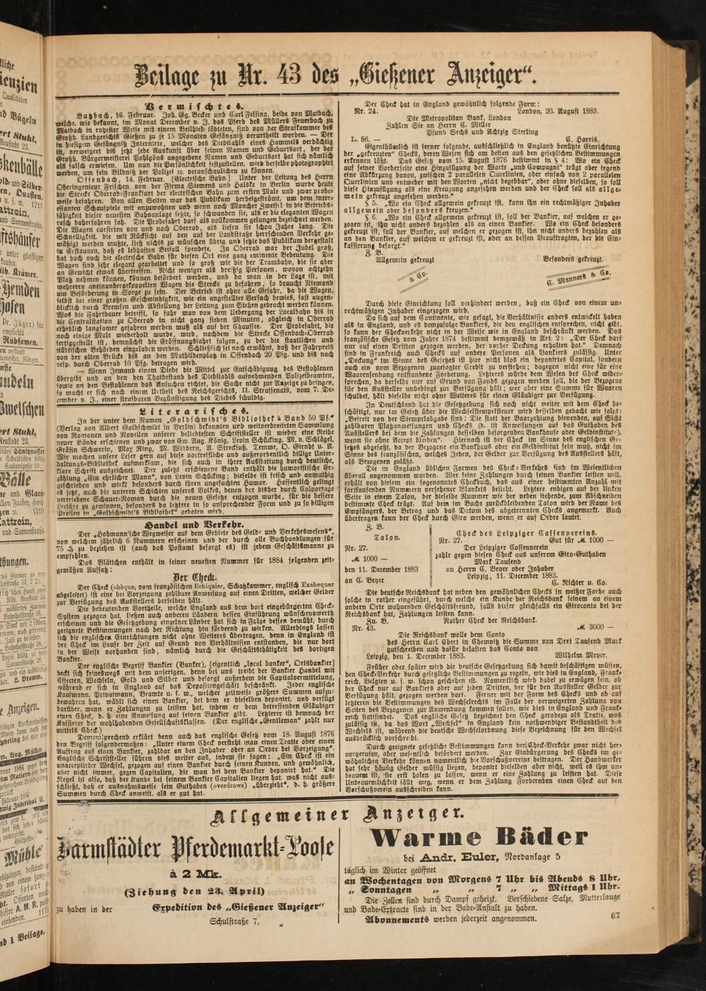 Berlage ;u Nr. 43 des „Gießener Anzeiger".