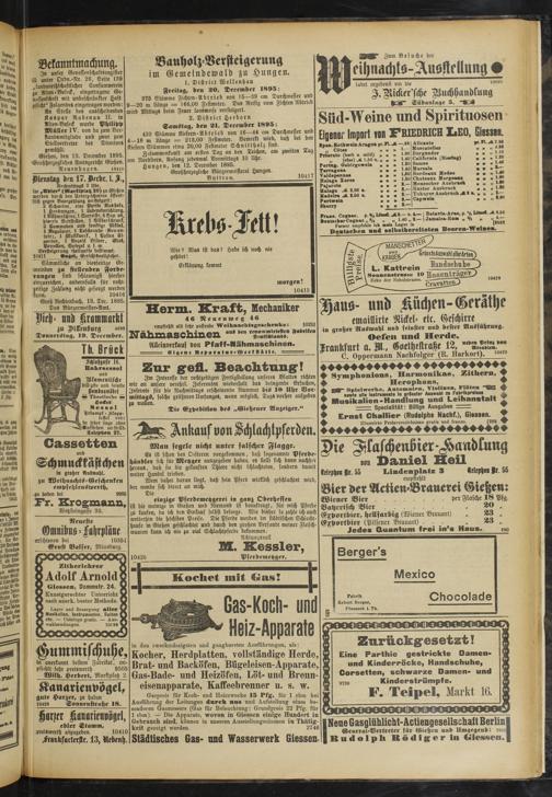 Gießen, den 13. December 1895. Grobherzogliches Amtsgericht Gießen. ________Neuenhagen. 10418 Dienstag dm 17. Dtlbr. I. I., NnchmittagS 2 Ubr, im (Marktplatz 20) zu Gießen