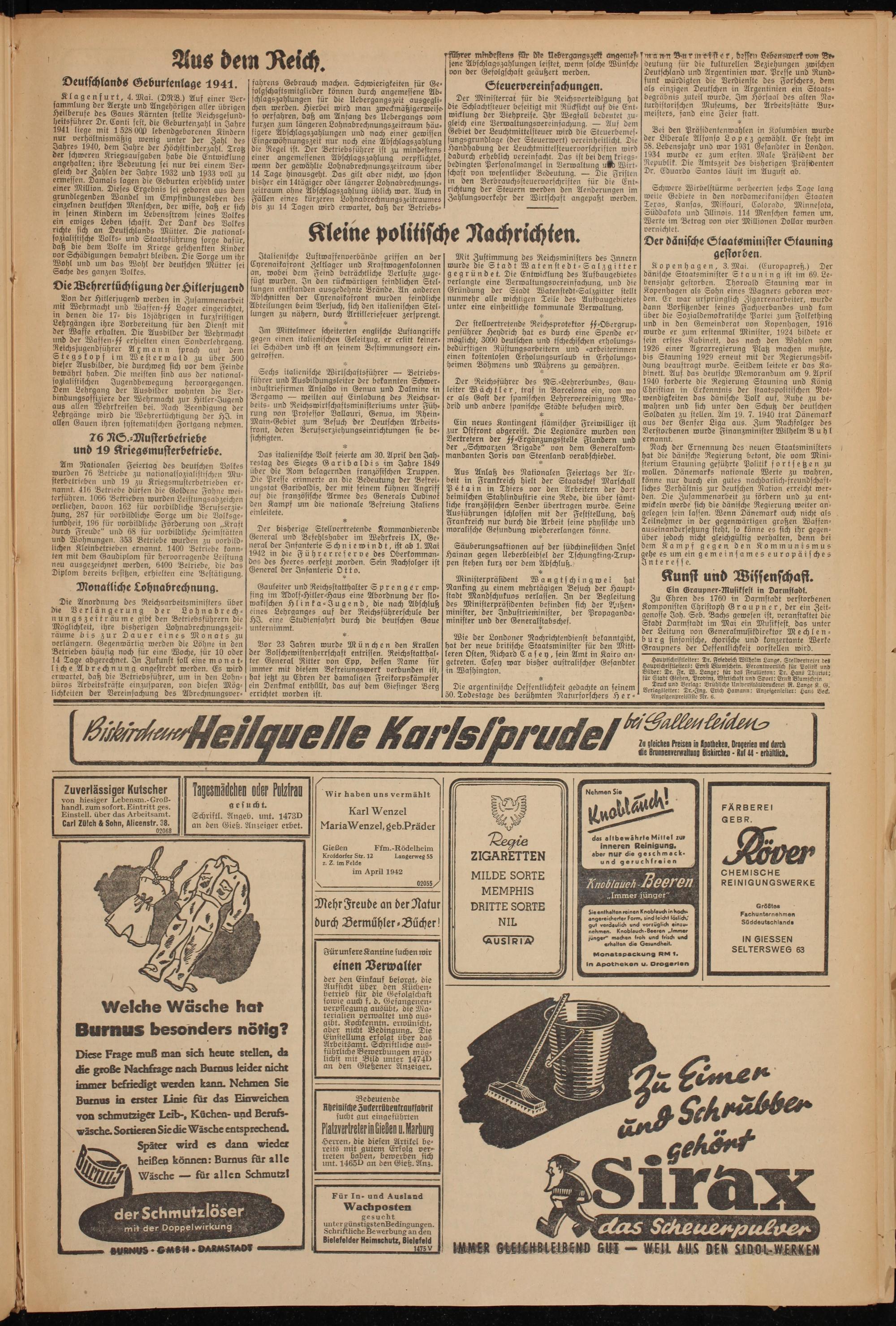 Aus Anlaß des Nationalen Feiertags der Arbeit in Frankreich hielt der Staatschef Marschall Petain in Thiers vor den Arbeitern der dort heimischen Stahlindustrie eine Rede, die über sämtliche französischen Sender übertragen wurde. Seine Ausführungen schlossen mit der Feststellung, daß Frankreich nur durch die Arbeit seine physische und moralische Gesundung wiedererlangen könne.