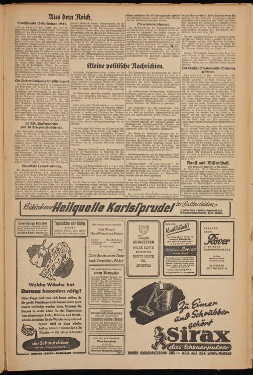 Am Nationalen Feiertag des deutschen Volkes wurden 76 Betriebe zu nationalsozialistischen Musterbetrieben und 19 zu Kriegsmusterbetrieben ernannt. 416 Betriebe dürfen die Goldene Fahne weiterführen. 1066 Betrieben wurden Leistungsabzeichen verliehen, davon 162 für vorbildliche Berufserziehung, 287 für vorbildliche Sorge um die Volksgesundheit, 196 für vorbildliche Forderung von „Kraft durch Freude" und 68 für vorbildliche Heimstätten und Wohnungen. 353 Betriebe wurden zu vorbild- ilchen Kleinbetrieben ernannt. 1400 Betriebe konnten mit dem Gaudiplom für hervorragende Leistung neu ausgezeichnet werden, 6400 Betriebe, die das Diplom bereits besitzen, erhielten eine Bestätigung.