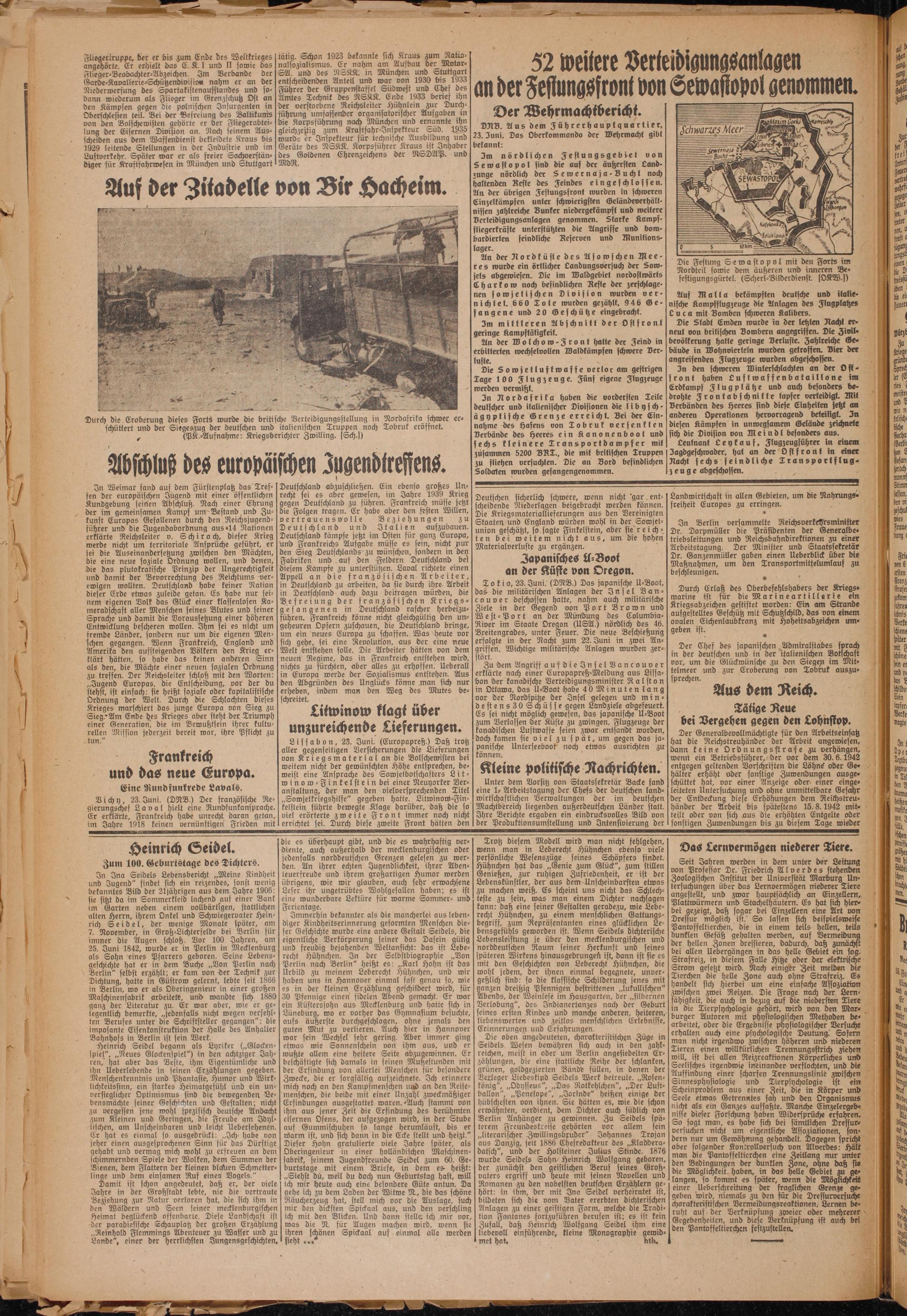 DRV. Aus dem Führerhauptquartier, 23. Juni. Das Oberkommando der Wehrmacht gibt bekannt: